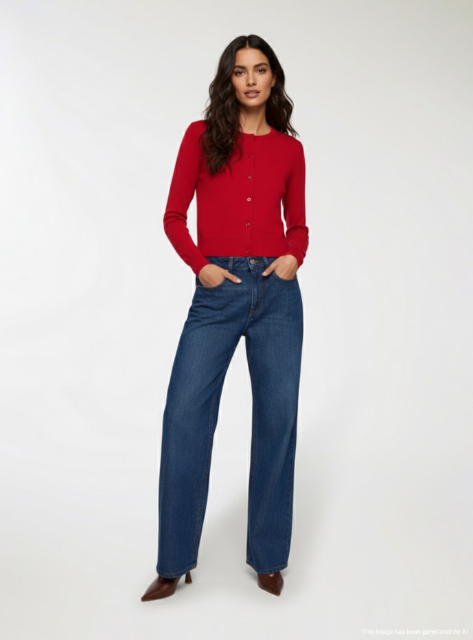 Dámsky sveter s dizajnom kardigánu, charakteristický predným zapínaním na gombíky. Má priliehavý strih ideálny na kombinovanie so sukňami alebo nohavicami s vysokým pásom. Perfektný na bežné príležitosti. Dlhé rukávy a okrúhly výstrih dodávajú kúsku jednoduchosť a všestrannosť.