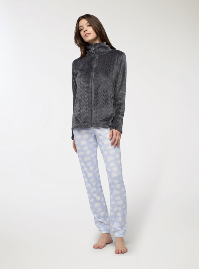 Teplá dámska mikina ideálna na zimu, charakterizovaná pletenou textúrou, ktorá poskytuje teplý a pohodlný pocit. Dizajn obsahuje vysoký golier, dlhé rukávy, pohodlné bočné vrecká a praktické zapínanie na zips. Bez kapucne a v jednofarebnom prevedení je perfektná pre neformálny, ale upravený vzhľad, vhodná na voľný čas alebo chladnejšie dni. Univerzálny a pohodlný kúsok do sezónneho šatníka.