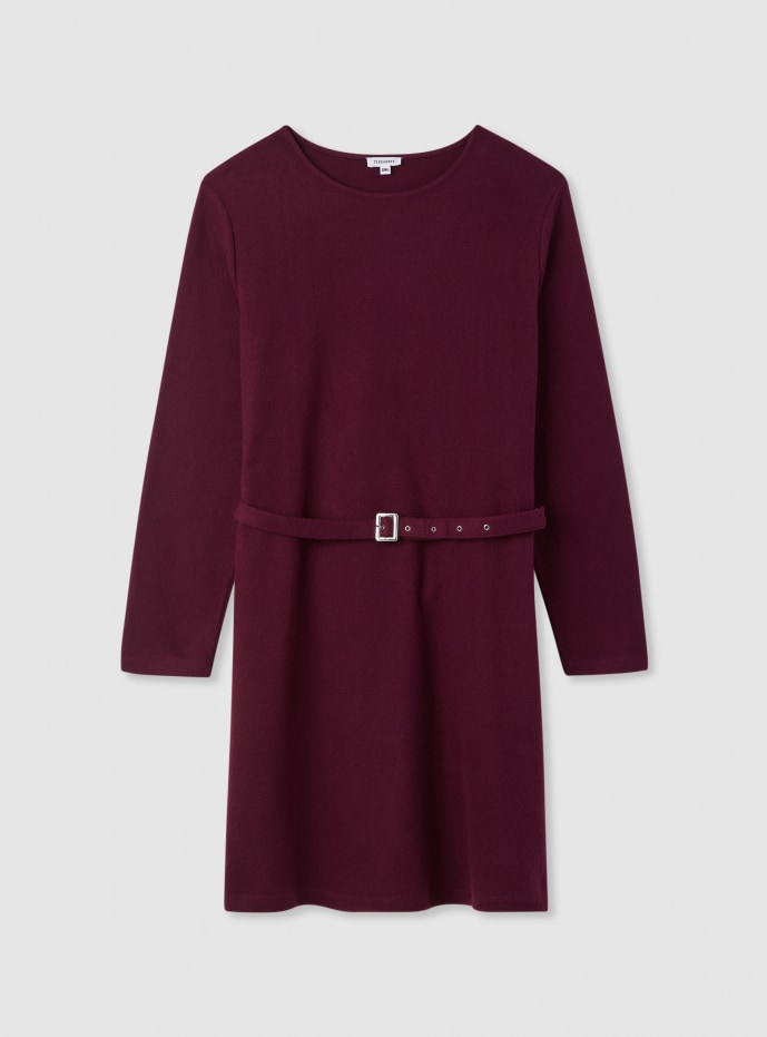 Dámske jednofarebné šaty s okrúhlym výstrihom a dlhými rukávmi. Rovný strih zvýraznený tenkým opaskom s prackou v páse na definovanie siluety. Dĺžka nad kolená. Ľahko sa kombinujú s čižmami alebo teniskami na voľný čas a s blejzrom alebo trenčkotom do kancelárie. Pohodlný strih a čistý dizajn, ktorý sa ľahko kombinuje.