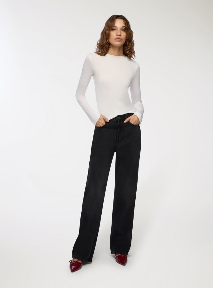 Dámske tričko s dlhým rukávom a lodičkovým výstrihom. Ideálne pre ležérny a všestranný vzhľad, perfektne sa hodí k džínsom alebo nohaviciam na každodenný outfit. Pohodlný strih a jednoduchý dizajn ho robia vhodným na rôzne príležitosti, od práce až po voľný čas. Perfektné pre tých, ktorí hľadajú základný a praktický kúsok.