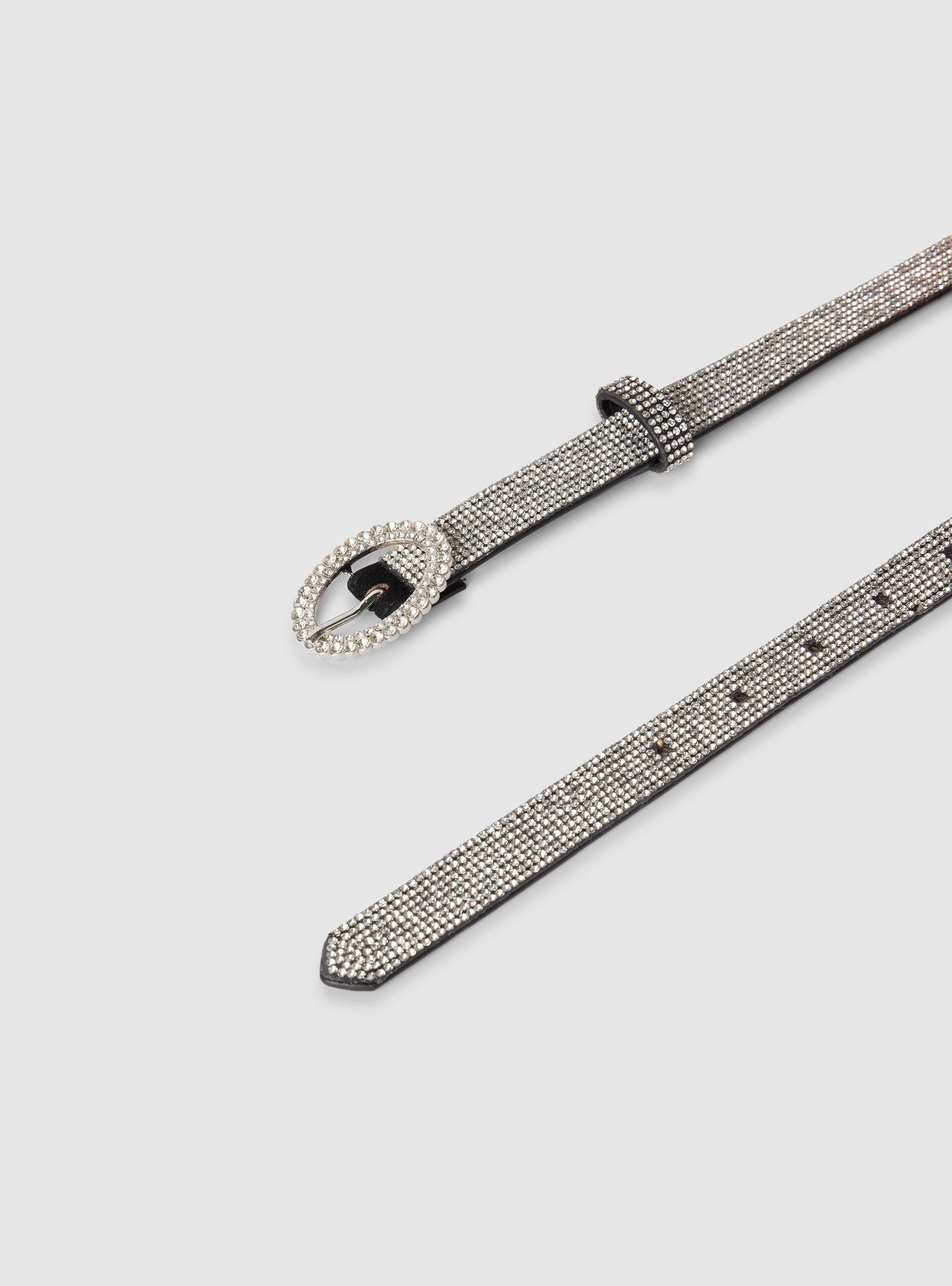Belti i gruas ideale për të shtuar një prekje elegancë dhe shkëlqim në çdo veshje. I përsosur për raste speciale ose mbrëmje, ky bel dallohet për dizajnin e tij të rafinuar me stras dhe mbylljen me një gjerdan të dekoruar. Mund të kombinohet me fustane elegante ose pantallona për një pamje sofisticuar dhe glamuroze.Detajet