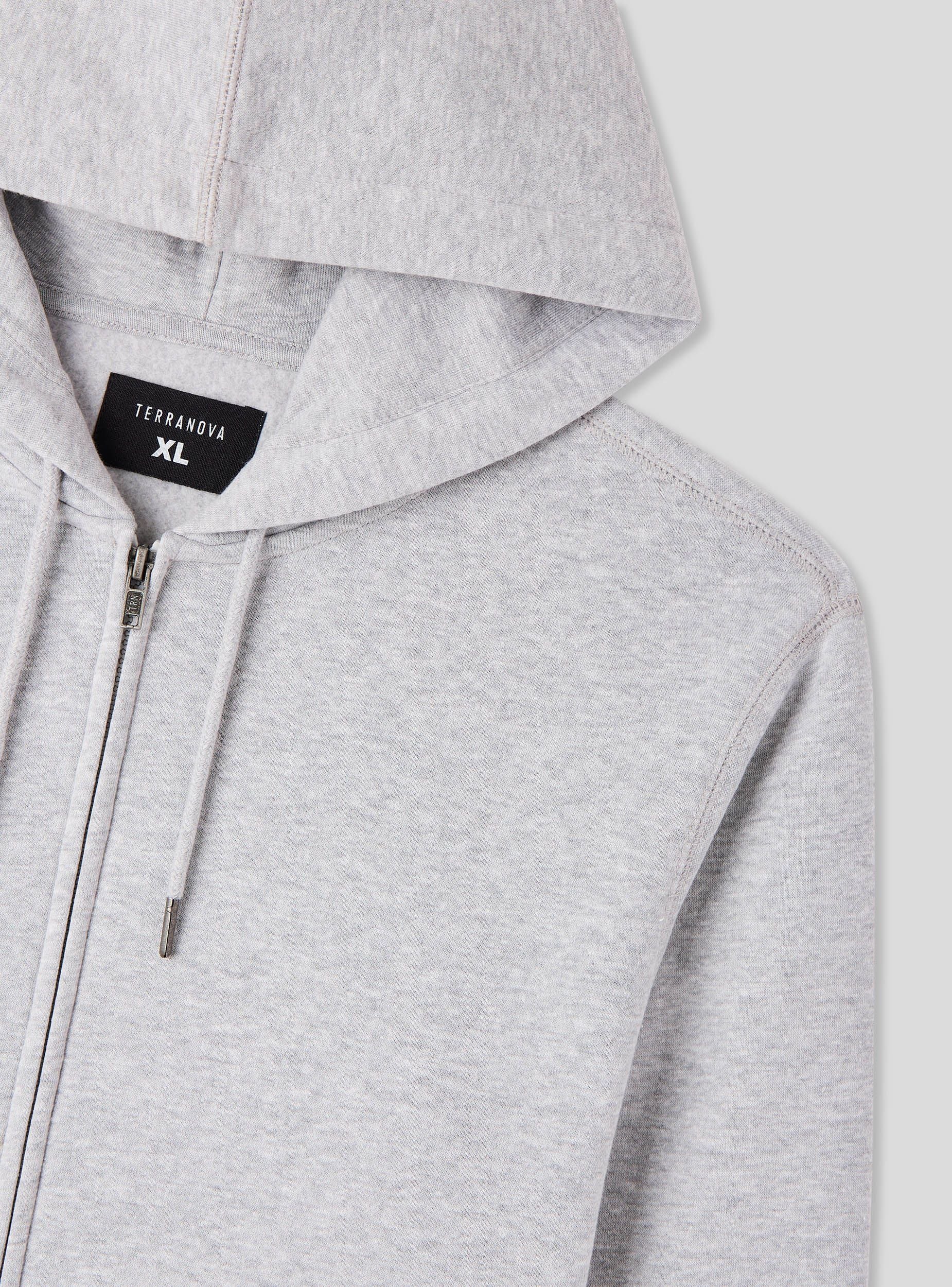 Sweatshirt e rëndë për burra ideale për kohën e lirë dhe ditët më të ftohta. Ka një ngjyrë të njëtrajtshme që i përshtatet stileve të ndryshme, një kapuç të rregullueshëm me lidhëse për mbrojtje optimale, një mbyllje praktike me zinxhir në pjesën e përparme dhe xhepa të gjerë për funksionalitet maksimal. Mëngët e gjata përfundojnë dizajnin, duke garantuar komoditet dhe ngrohtësi në çdo rast.Detajet