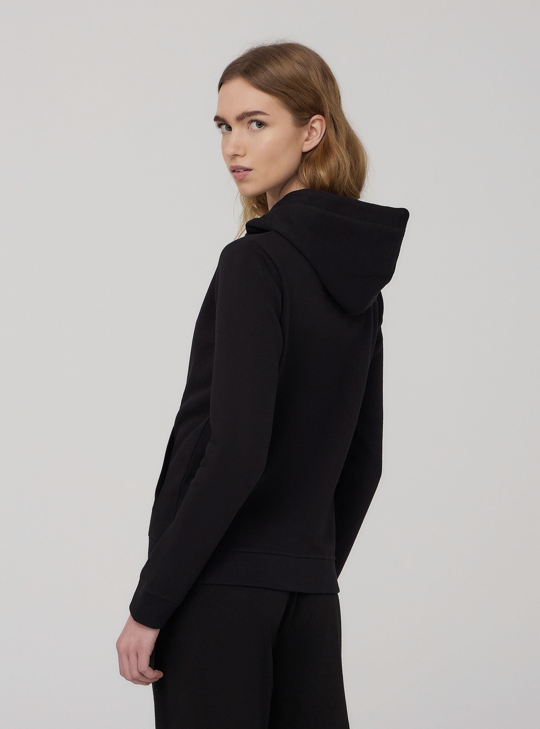 Felpa e rëndë për gra me ngjyrë të njëtrajtshme, ideale për të përballuar ditët më të freskëta me stil dhe komoditet. E pajisur me kapuç të rregullueshëm me kordhë, zinxhir praktik në pjesën e përparme dhe xhepa anësorë, ofron funksionalitet dhe shumëllojshmëri. E përsosur për një pamje të rastësishme dhe dinamike, përshtatet lehtësisht me pantallona sportive ose xhinse.Detajet