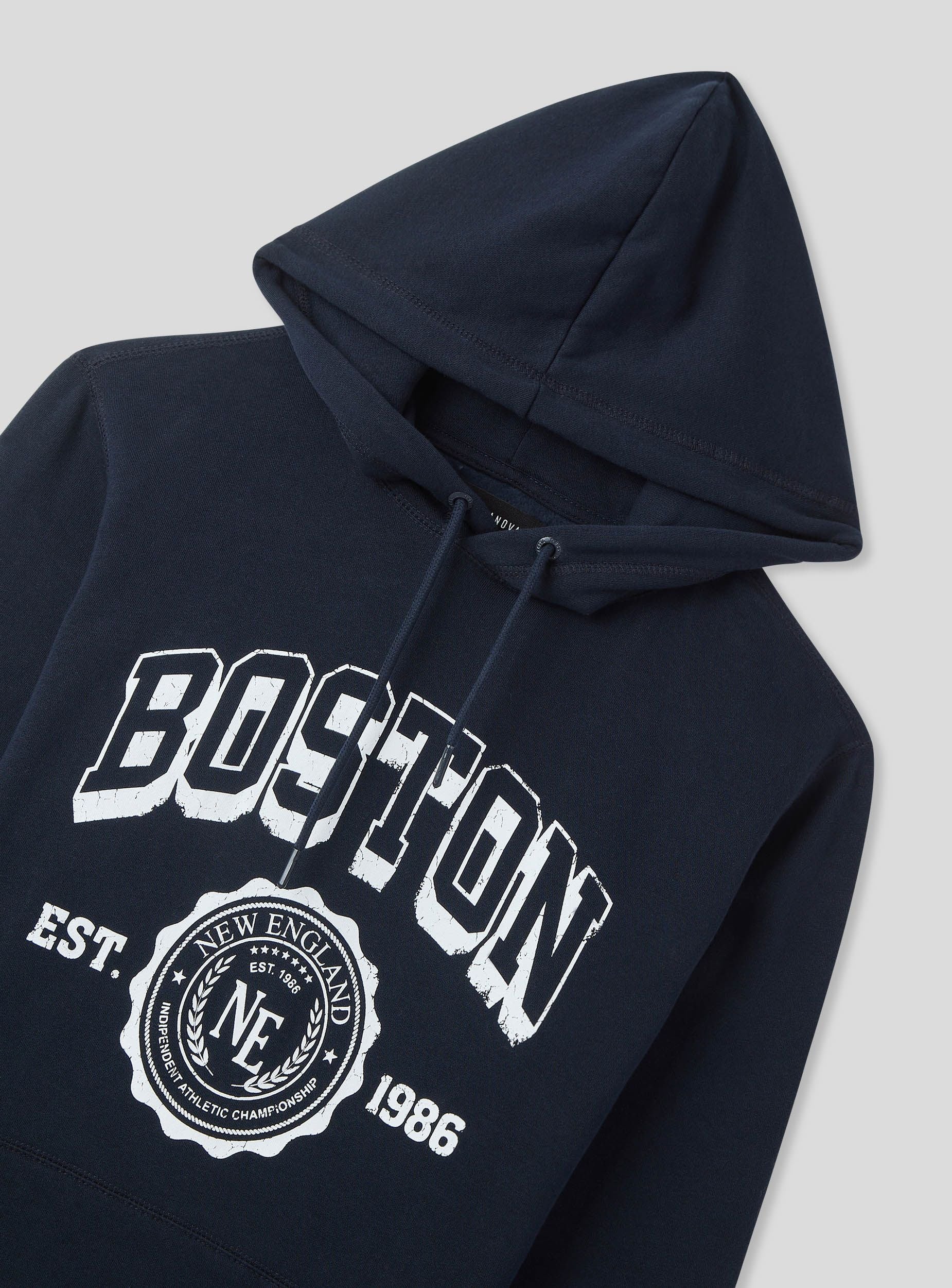Pulovër i lehtë për burra me mëngë të gjata dhe kapuç të rregullueshëm me lidhëse, si dhe një xhep praktik marsupial. Printimi frontal në stil sportiv i jep një prekje dinamike, perfekt për veshje të rastësishme dhe të relaksuara. Ideale për kohën e lirë, e kombinuar me xhinse ose jogger dhe atlete, garanton komoditet dhe stil në ditët më të rastësishme.Detajet