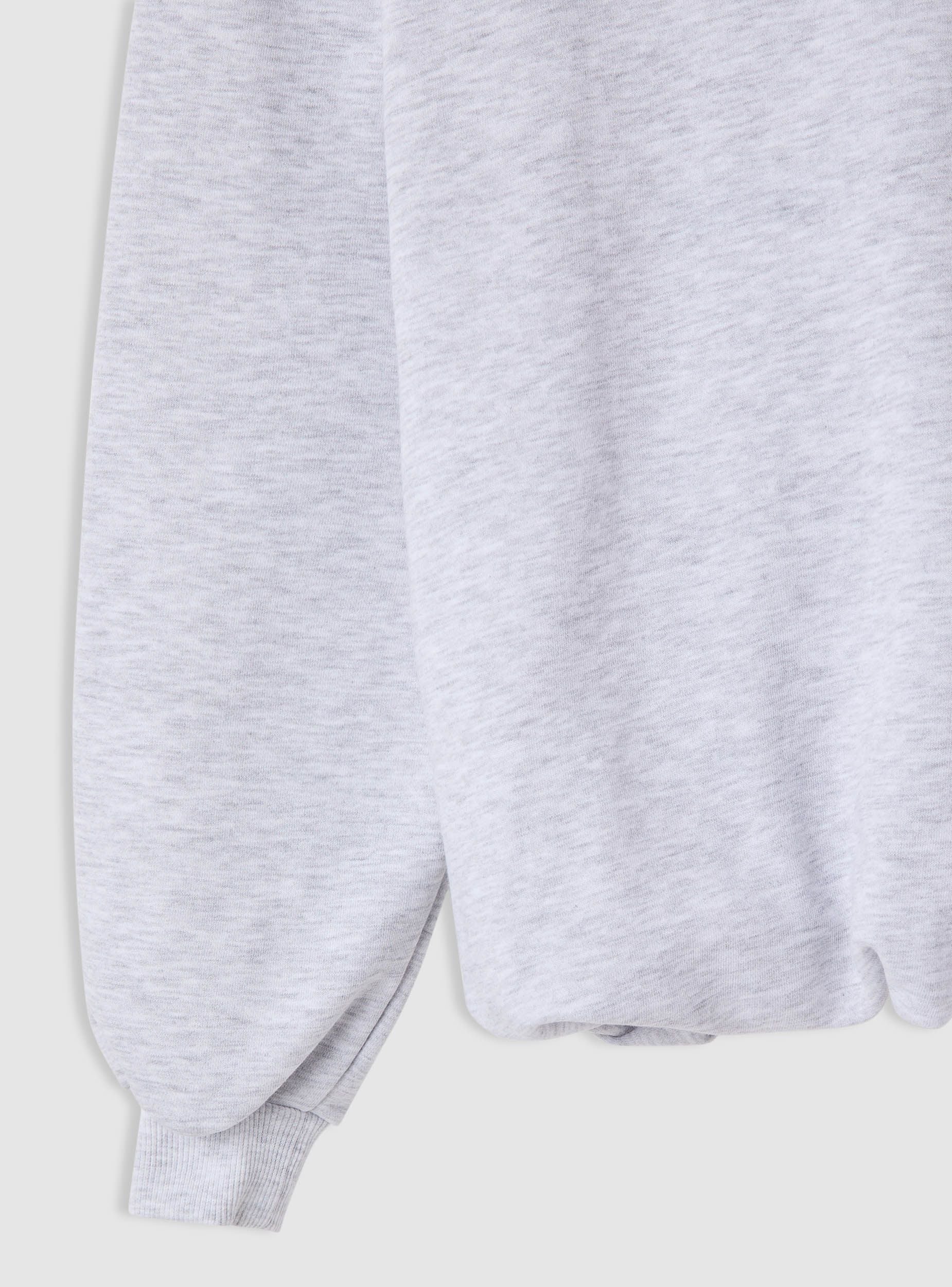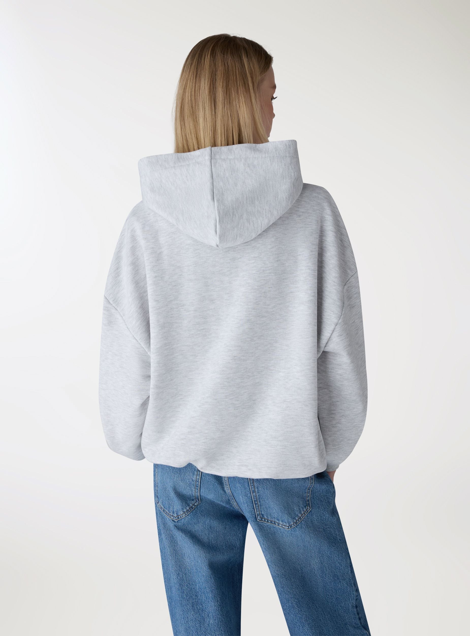 Bluza me kapuç për gra, pa zinxhir, me prerje balloon për një përshtatje të gjerë dhe mbështjellëse. E rëndë falë pjesës së brendshme prej pile, siguron ngrohtësi në ditët më të freskëta. Në pjesën e përparme dallon një shkrim ironik që i jep karakter dhe personalitet pamjes. Mëngët e gjata dhe fundi me elastik plotësojnë dizajnin. Mund të kombinohet me xhinse ose pantallona për të krijuar veshje casual dhe origjinale, ideale për kohën e lirë dhe daljet e përditshme.Detajet