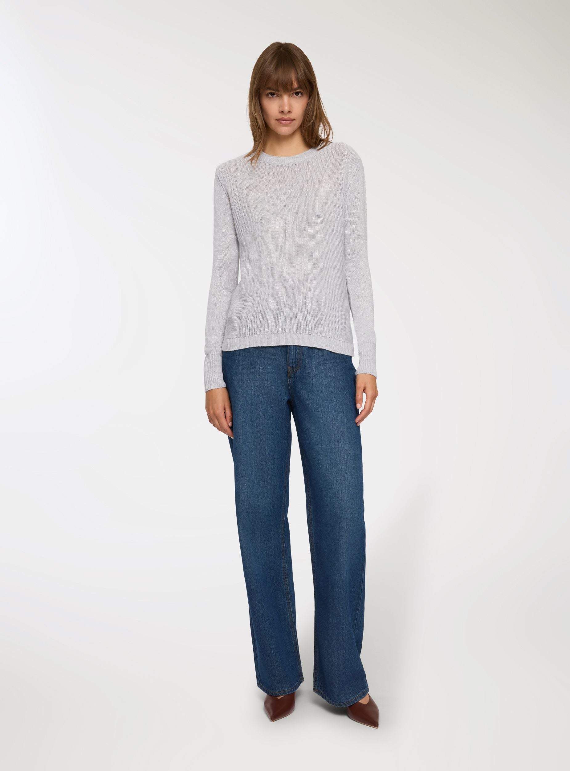 Mëngë për gra ideale për një pamje casual chic dhe të shumëanshme. E përsosur për t'u veshur në raste të ndryshme, kjo mëngë përshtatet lehtësisht me xhinse ose pantallona për një veshje komode dhe në modë. Dizajni i thjeshtë i pasuruar me efektin shkëlqyes dhe përshtatja e rregullt e bëjnë atë një pjesë thelbësore për gardërobën e çdo gruaje, e përshtatshme si për kohën e lirë ashtu edhe për veshjet e punës.Detajet