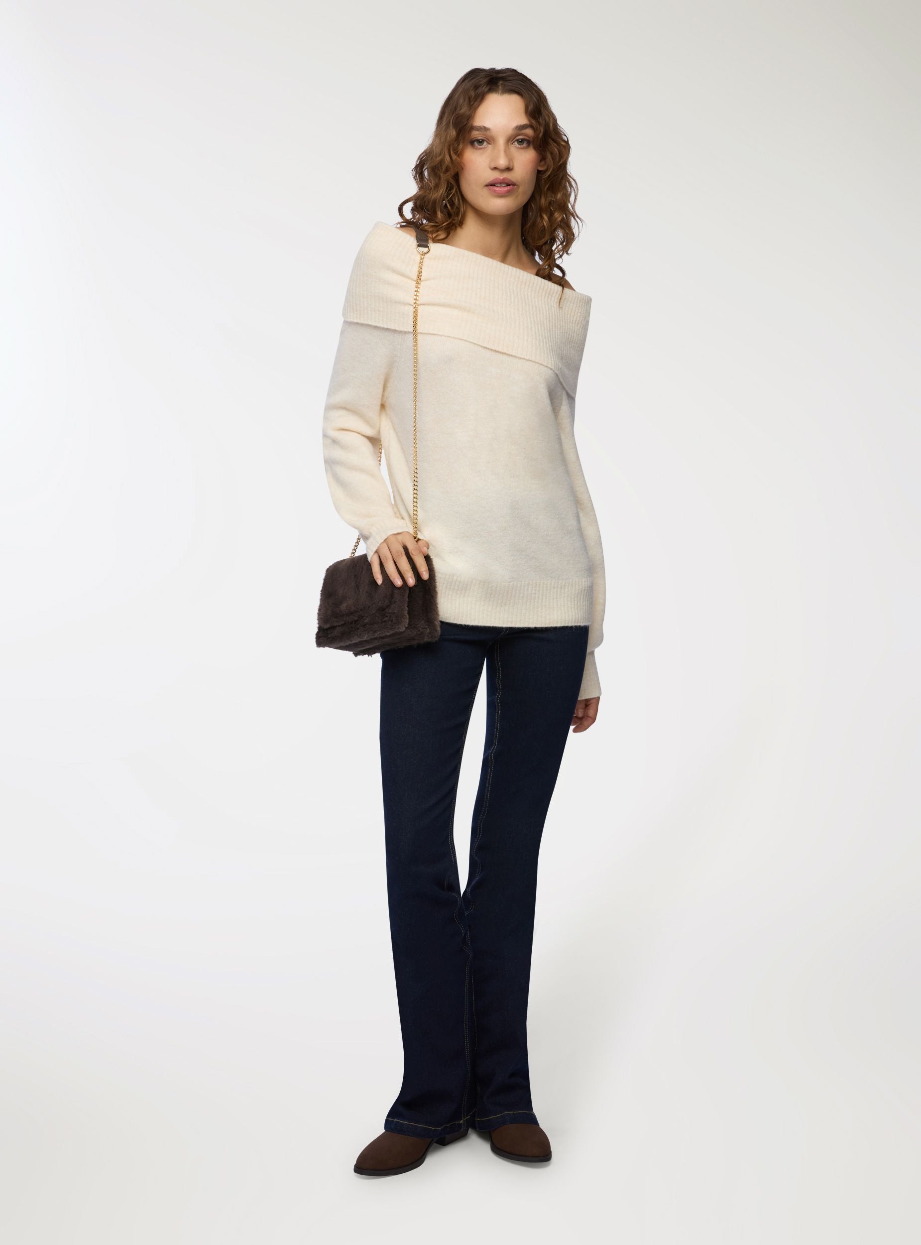 Fustani për gra me supe të zbuluara dhe fund të gjerë të punuar me vijë, në ngjyrë të njëtrajtshme me mëngë të gjata. Femërore dhe moderne, është perfekte për pamje mbrëmjeje ose për t'i dhënë një prekje sensuale edhe veshjeve dimërore. Përshtatet lehtësisht me xhinse ose funde me bel të lartë.Detajet