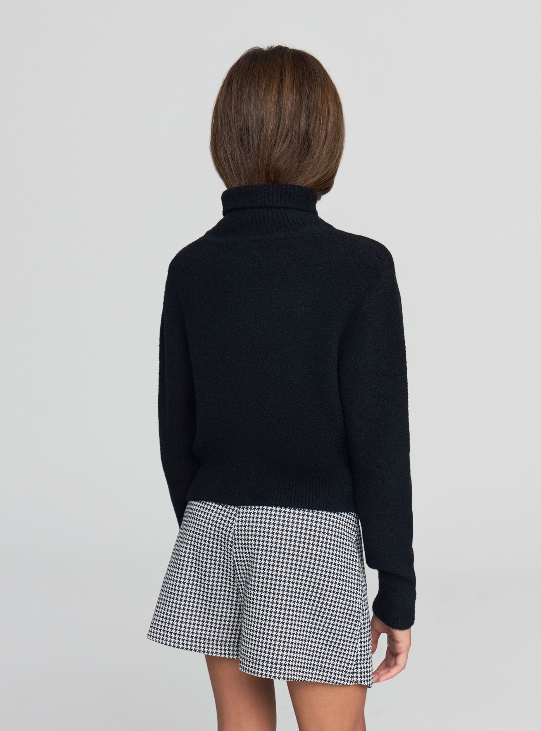 Pantallona-fustan për vajza me model pied de poule, me panel frontal të mbivendosur dhe fjongo në anë. Model i shkurtër me përshtatje të rregullt. Kombinohet me bluzë ose këmishë dhe një kardigan për një pamje të përpunuar. Bel i lëmuar pa mbyllje të dukshme, dizajn praktik që siguron liri lëvizjeje.Detajet