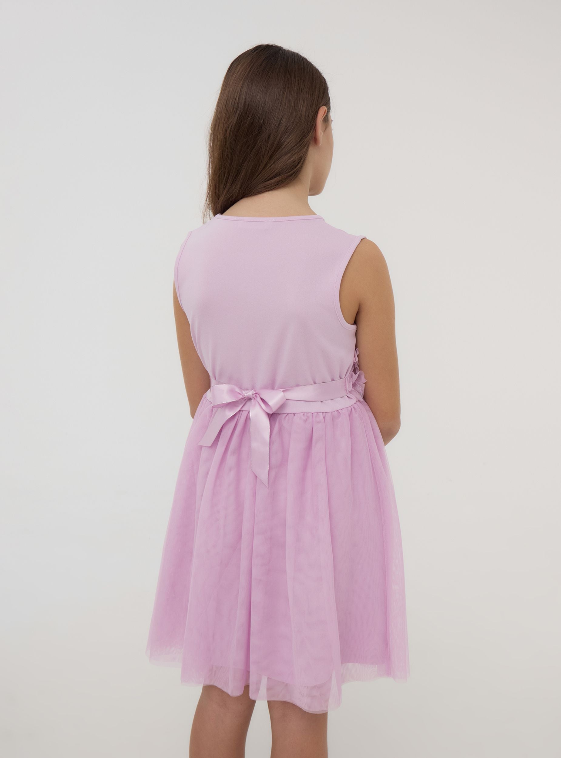 Fustan i vajzës me një dizajn glamour dhe romantik, perfekt për raste speciale. Korpeti është i rrudhur dhe i jep një prekje lëvizjeje veshjes, i theksuar nga prania e një bel të ngjashëm në beli, që shton elegancën dhe praktikën. Fundi në tullë, i gjerë dhe i lëvizshëm, është menduar për të garantuar komoditet dhe liri lëvizjeje. Një veshje ideale për ta bërë çdo vajzë të ndihet në qendër të vëmendjes, me një stil që thekson paqen dhe gëzimin.Detajet