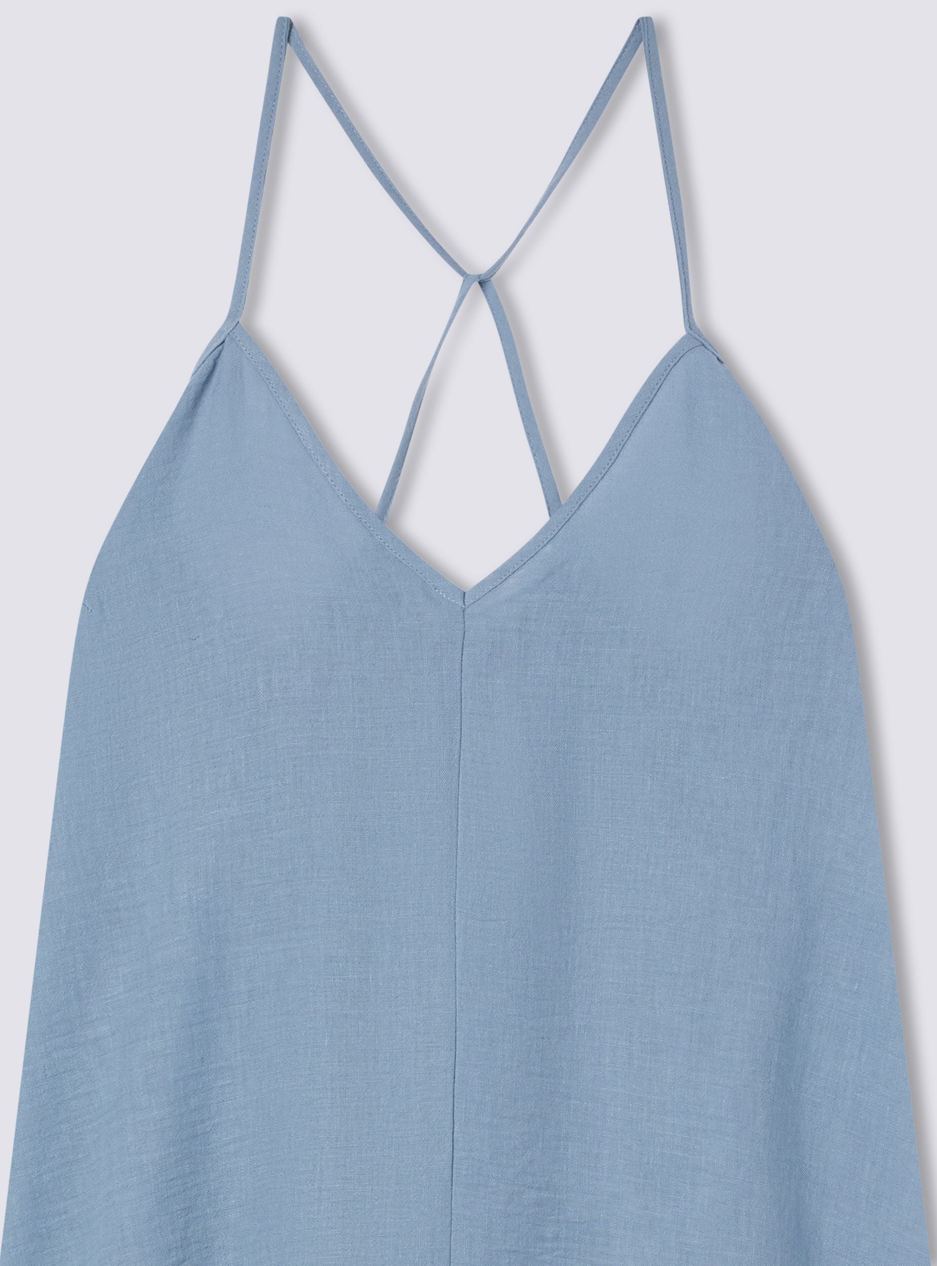 Fustani i gjatë për gra është perfekt për ditët e verës. Ai ka një ngjyrë të njëtrajtshme elegante dhe një dekolte të gjerë në formë V që i jep veshjes një sensualitet delikat. Brezat e hollë kryqëzohen në shpinë, duke krijuar një dizajn sofistik dhe femëror që thekson figurën me elegancë. Linja fluide e fustanit bie butë, duke i dhënë një lëvizje të lehtë çdo hapi. Ideale për një mbrëmje speciale ose një shëtitje në plazh, ky fustan bashkon komoditetin dhe stilin.Detajet