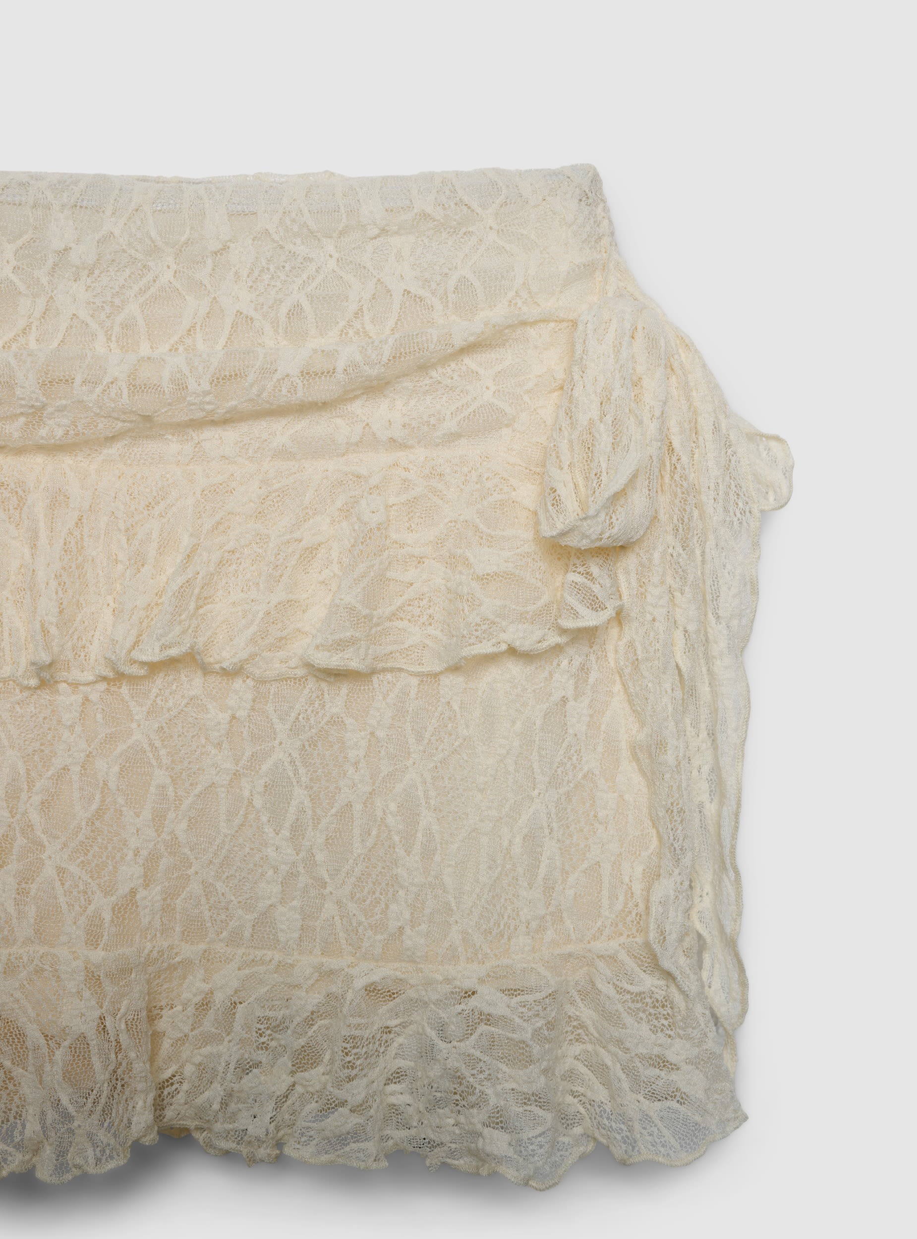 Fustan mini për gra me ngjyrë të njëtrajtshme, me punim në dantellë dhe volanë që i japin lëvizje. Model me stil portofoli me rrip anësor për t’u lidhur dhe bel të përqafuar, ideal me topa të ngushtë dhe këmisha për pamje mbrëmjeje ose për aperitiv. Linjë e rregullt me fund paksa të zgjeruar, perfekt me çizme ose atlete për veshje shumëpërdorimshe.Detajet