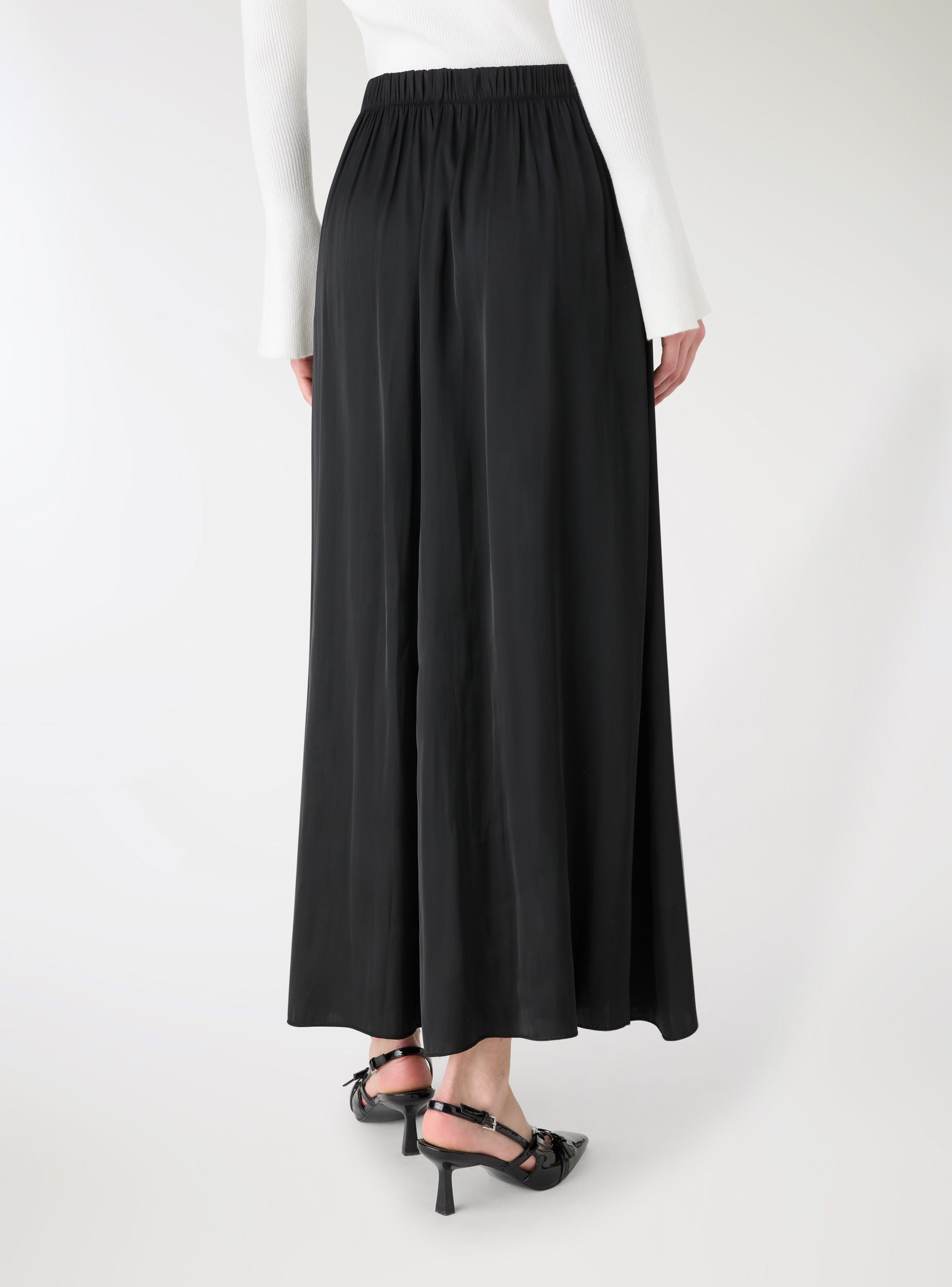Fustan midi për gra me ngjyrë të vetme, me linjë të zgjeruar dhe bel elastik që siguron rehati dhe përshtatje të lehtë. Tkani ka një efekt crinkle që i jep lëvizshmëri. Perfekt për veshje casual ose elegante me këmisha, topa dhe blazerë. Gjatësia poshtë gjurit, pa xhepa, ideal me sandale ose çizme të shkurtra për të kaluar nga dita në mbrëmje me stil.Detajet