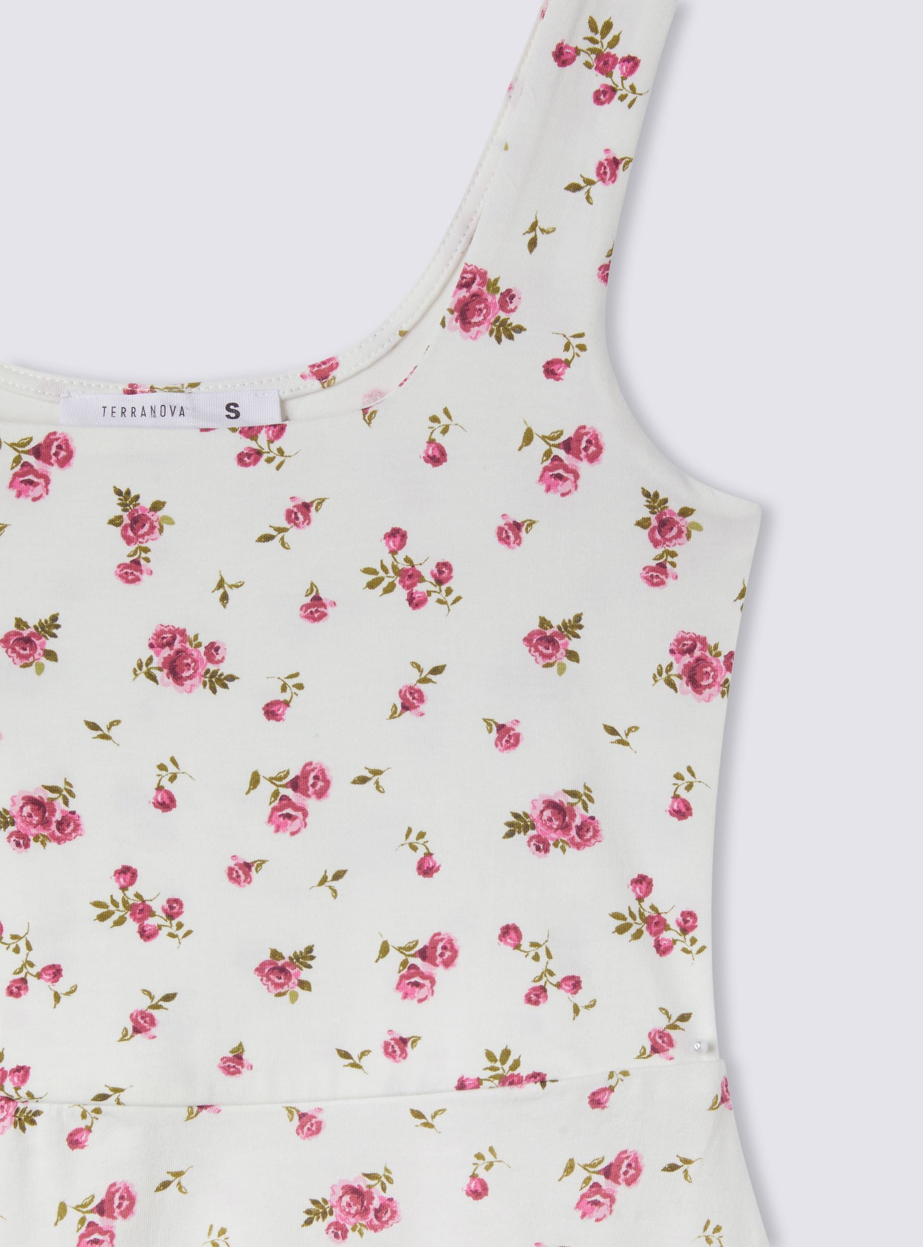 Fustan i grave me printë lulesh, i karakterizuar nga një dizajn i shkurtër dhe freskët në stilin skater. Brezat e hollë shtojnë një prekje lehtësie në veshje, ndërsa silueta e zgjeruar thekson figurën, duke krijuar lëvizje dhe një pamje rinore dhe pa brenga. Printi i luleve në të gjithë fustanin i jep një pamje romantike, perfekte për një veshje verore ose të rastësishme. Ky fustan është ideal për ata që kërkojnë një pamje femërore dhe shumëllojshmëri, e cila lehtë mund të kombinohet si me sandale ashtu edhe me sneakers për raste të ndryshme.Detajet