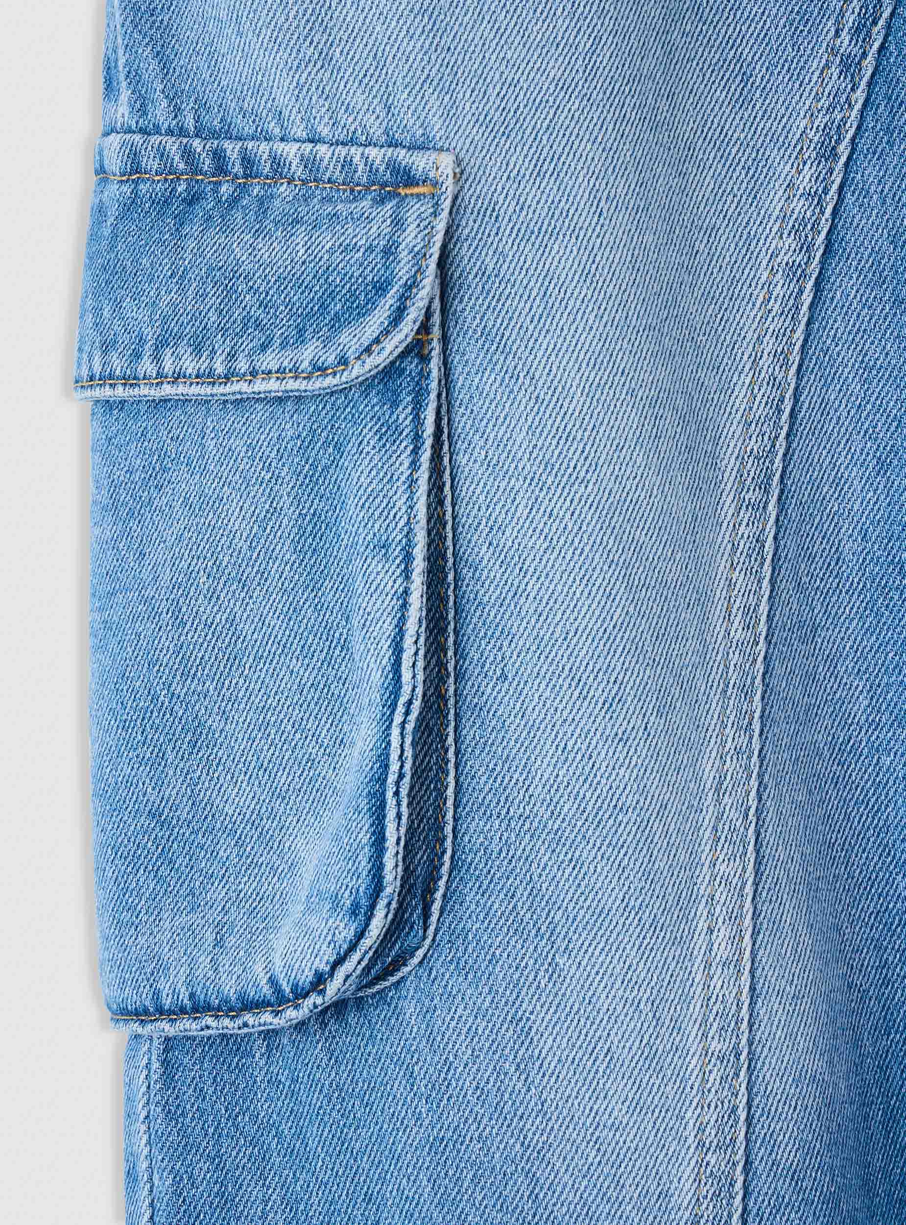 Jeans për fëmijë në stil cargo me ngjyrë të njëtrajtshme, me një përshtatje të gjerë që garanton liri lëvizjeje në çdo situatë. Të pajisur me xhepa të mëdhenj anësorë me kapak, perfekt për një pamje casual dhe funksionale në të njëjtën kohë. Bel me elastik dhe buton që siguron komoditet maksimal gjatë gjithë ditës. Ideal për t’u kombinuar me atlete dhe fanella për veshje praktike dhe gjithmonë në modë me tendencat më të fundit.Detajet