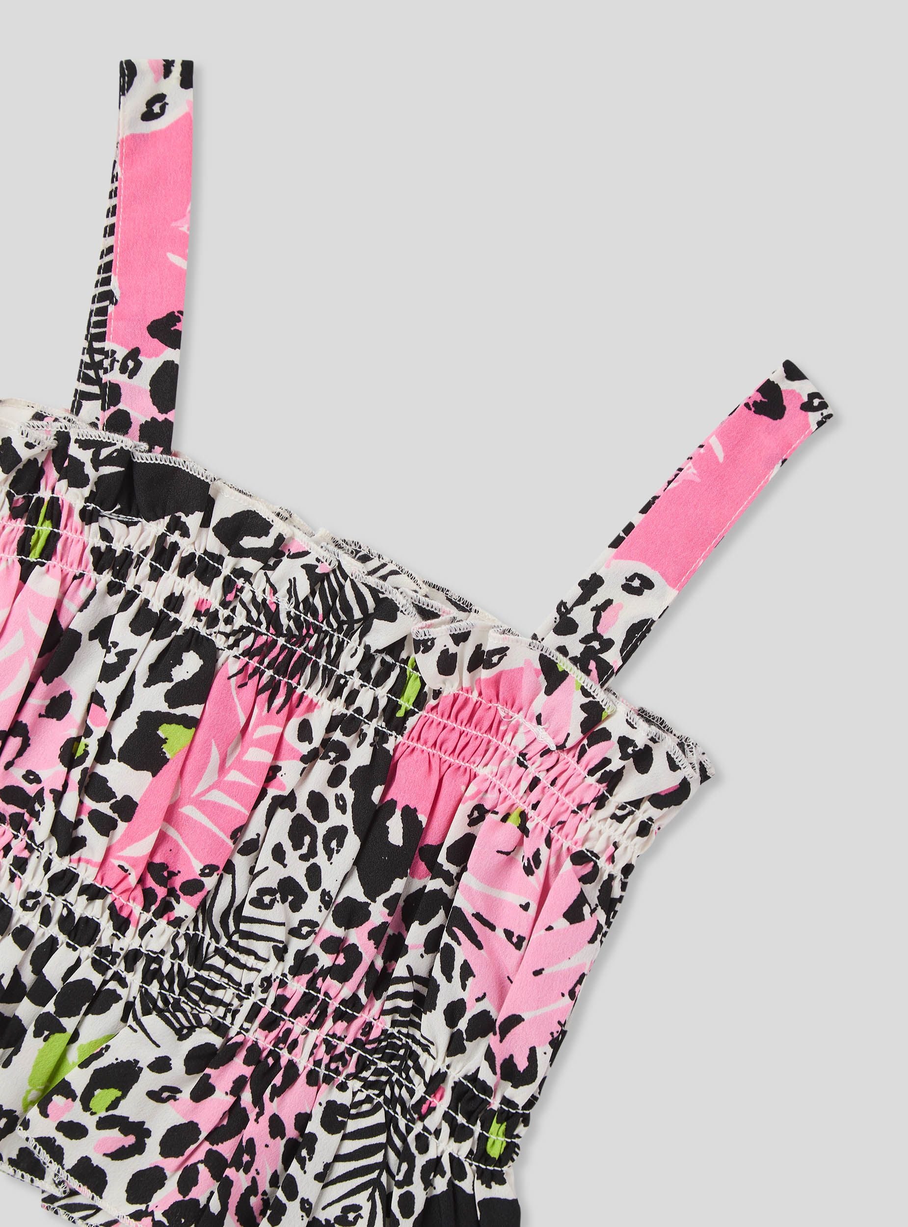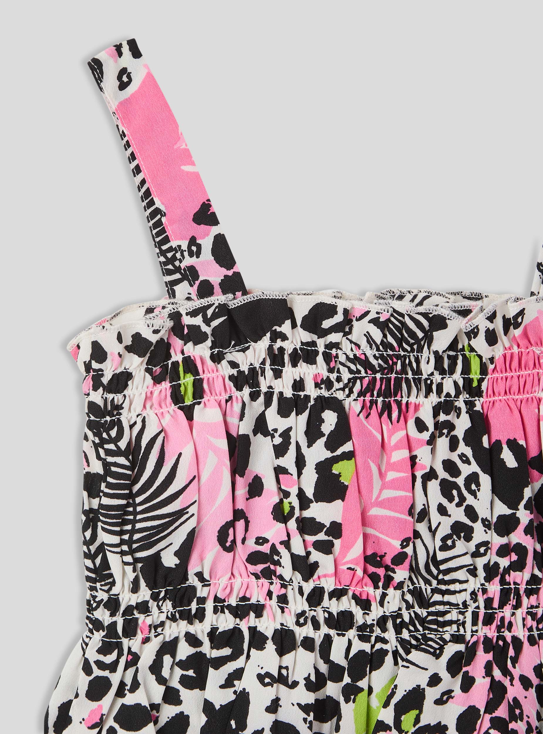 Kanotierë për vajza me dizajn të gjallë dhe modern, e karakterizuar nga një printim me pika me ngjyra që i jep një prekje të guximshme dhe të gëzueshme. Brezat ofrojnë një përshtatje të rehatshme, perfekte për ditët e verës. Ideale për t'u kombinuar me shkurtra, funde ose leggins për një pamje të freskët dhe dinamike, perfekte për kohën e lirë, pushimet ose aventurat në natyrë.Detajet