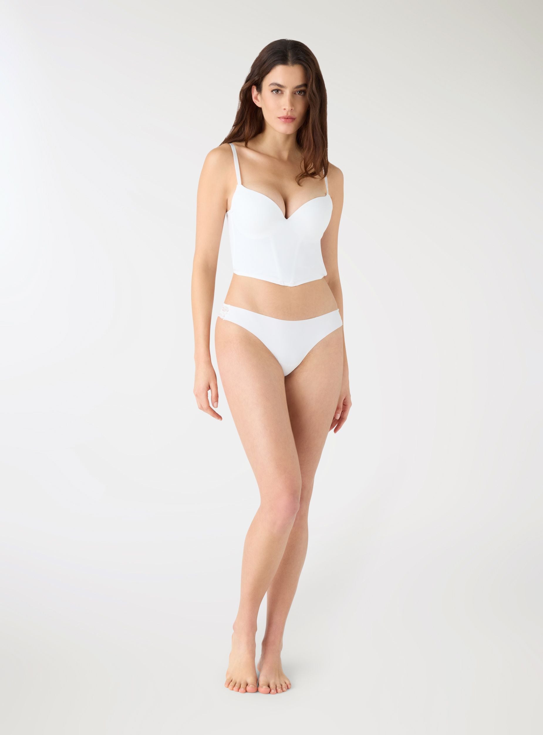 Paketim që përmban 2 slip për gra në stil brazilian. Model me dy materiale me insertë prej dantelle në anë dhe në pjesën e pasme. Elastik i rehatshëm në bel, qepje të pastra dhe mbështjellës i brendshëm. Ideal për përdorim të përditshëm ose për të kompletuar setet intime, i jep një prekje femërore falë dantellës dhe përshtatjes që vlerëson siluetën.Detajet