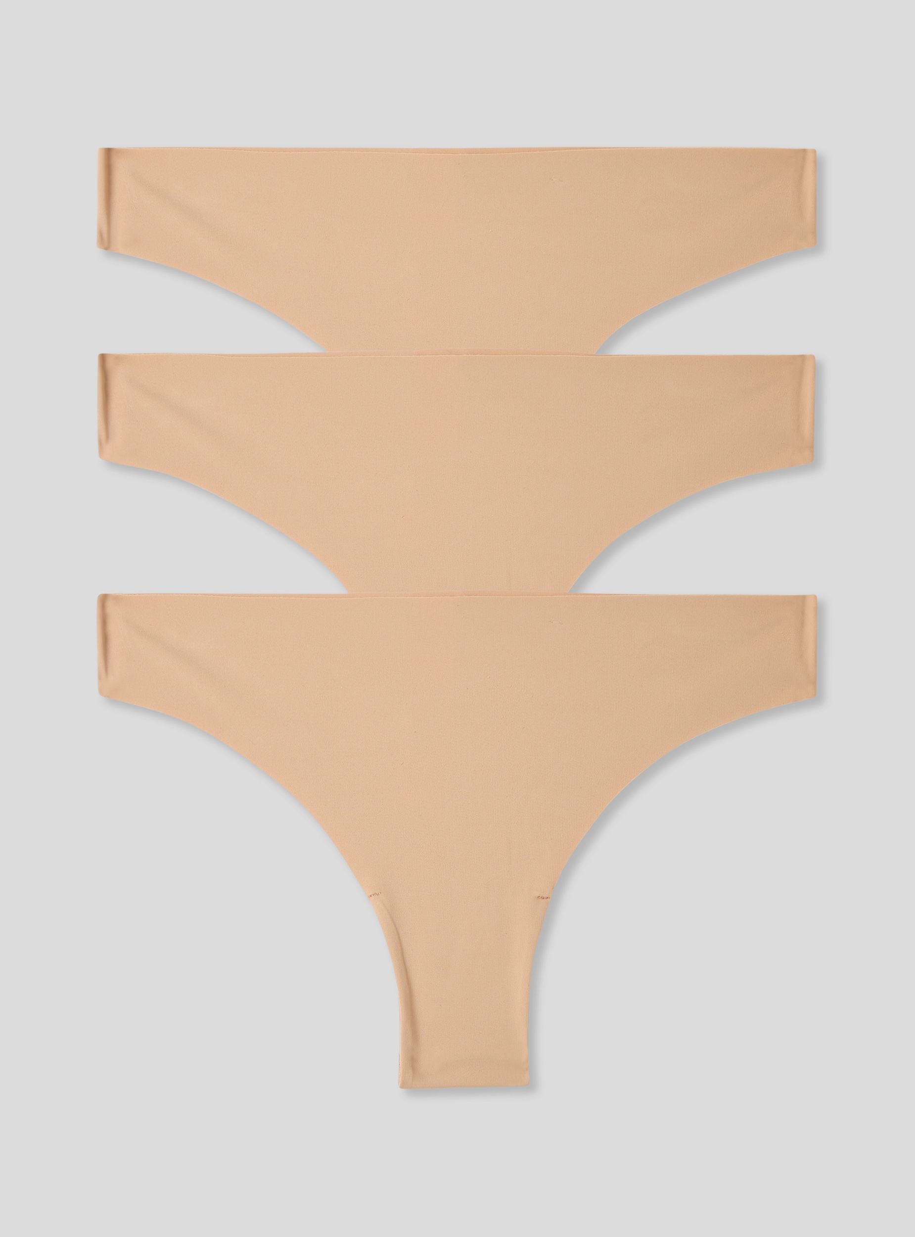 Paketa me 3 bikini për gra në stof mikrofibra me prerje të hapur, ngjyrë nude.Detajet