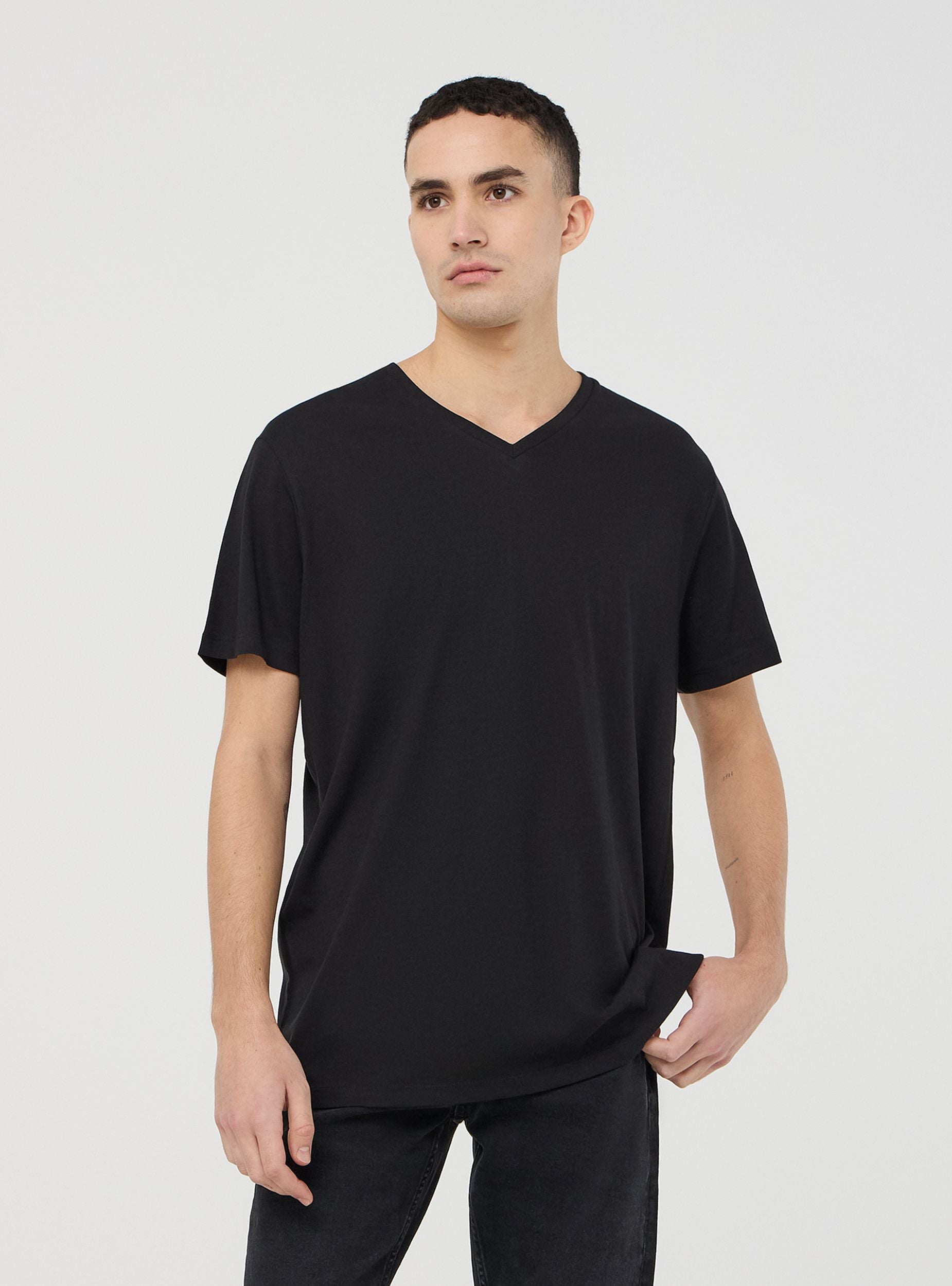 Pako përbërë nga 3 majica për burra me dekolte në V, të dizajnuara për ata që kërkojnë një stil të thjeshtë dhe funksional. Këto t-shirt me ngjyrë të njëtrajtshme dallohen për prerjen e tyre të shumëanshme, të përshtatshme si për një pamje të rastësishme ashtu edhe për t'u veshur si nënxhak. Mëngët e shkurtra dhe dekolteja në V sigurojnë komfort në çdo moment të ditës.Detajet