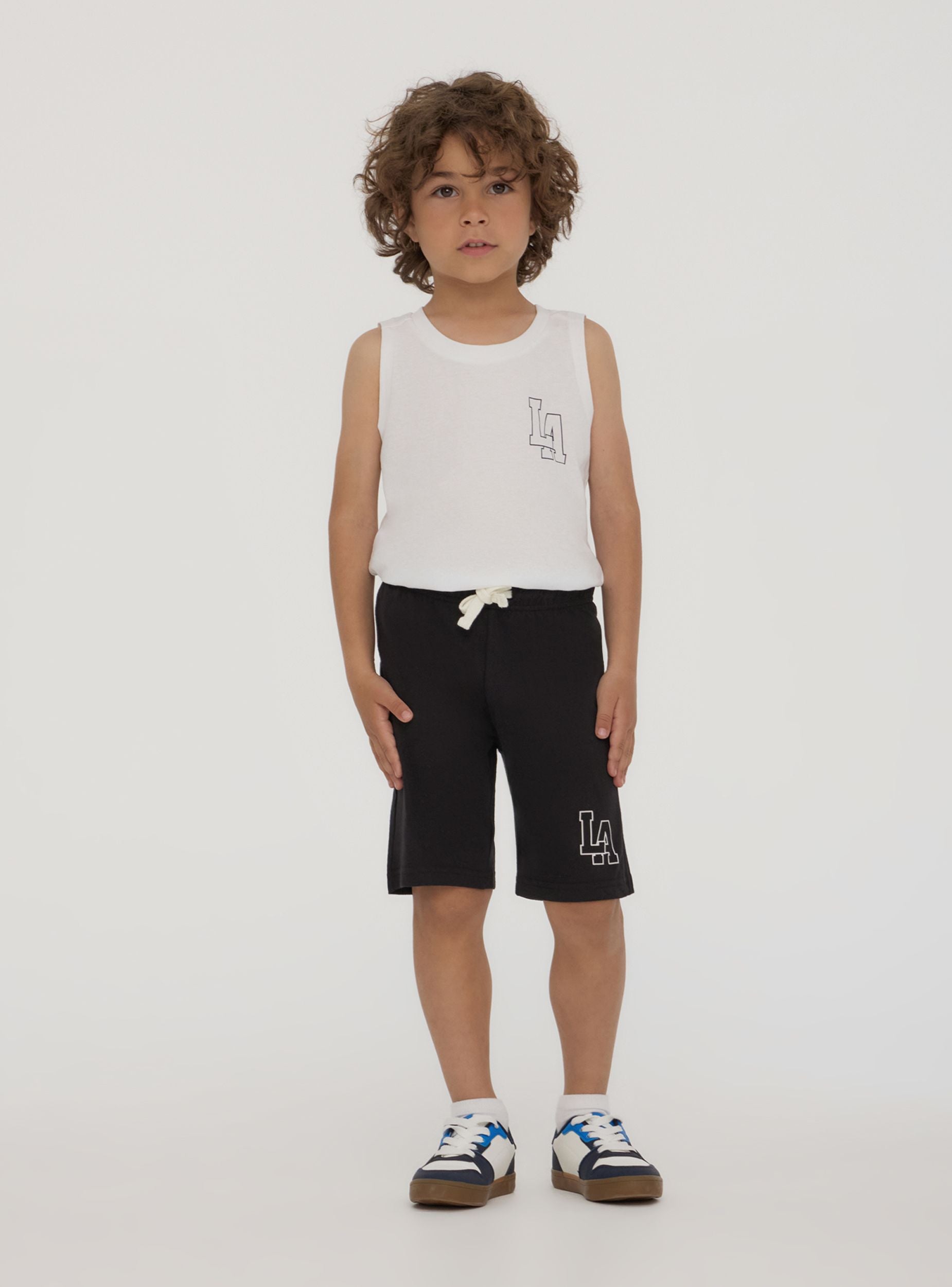 Pako përbërë nga 2 pantallona të shkurtër për fëmijë, të dyja me elastik në brez për një komoditet optimal dhe me kordona të rregullueshme për një përshtatje të personalizuar. Çdo palë ka një print dekorativ në një këmbë, që i shton një prekje stili sportiv. Këto pantallona të shkurtër janë ideale për aktivitete në natyrë, sport dhe kohë të lirë, duke garantuar liri lëvizjeje dhe praktikë.Detajet