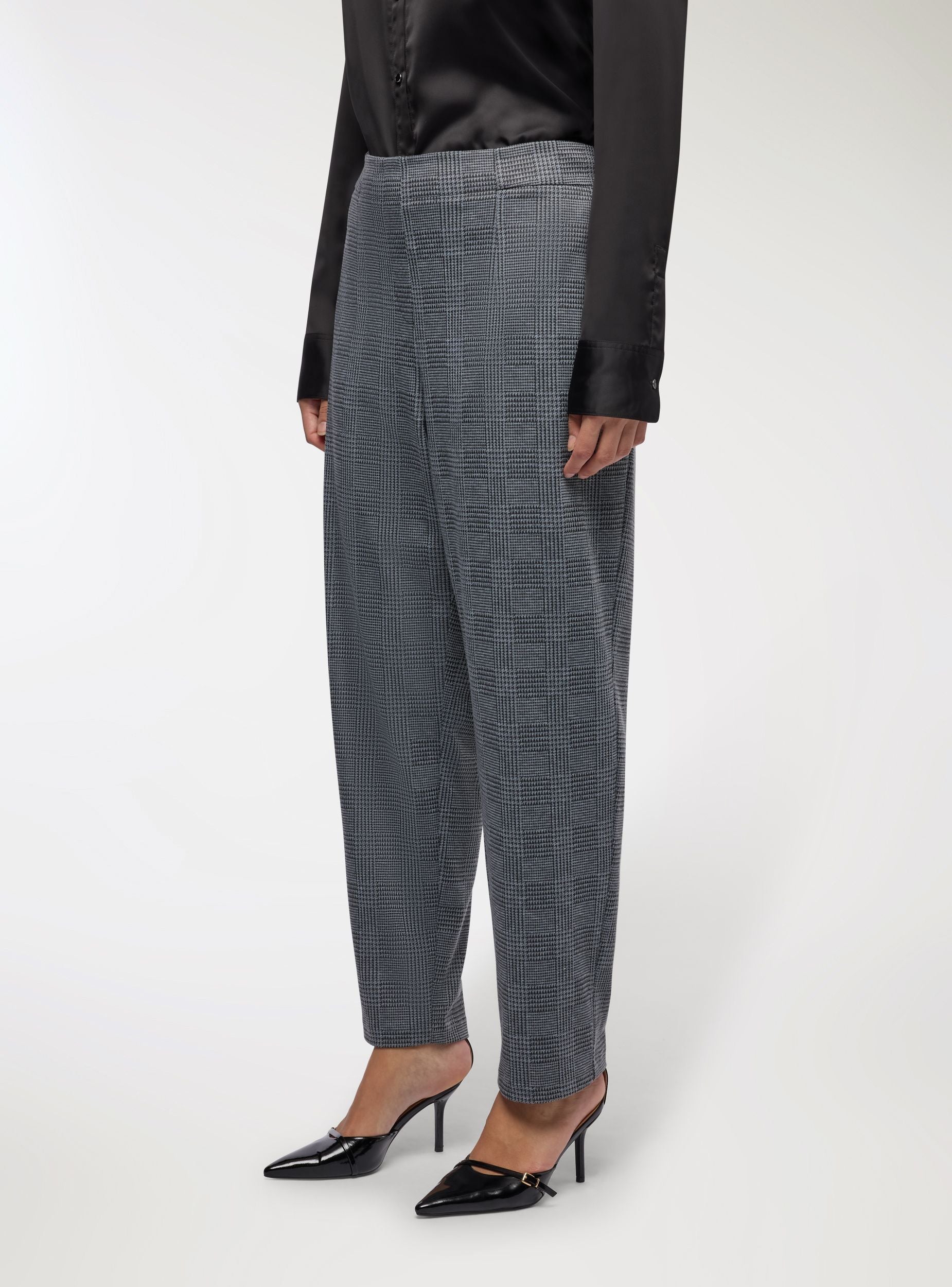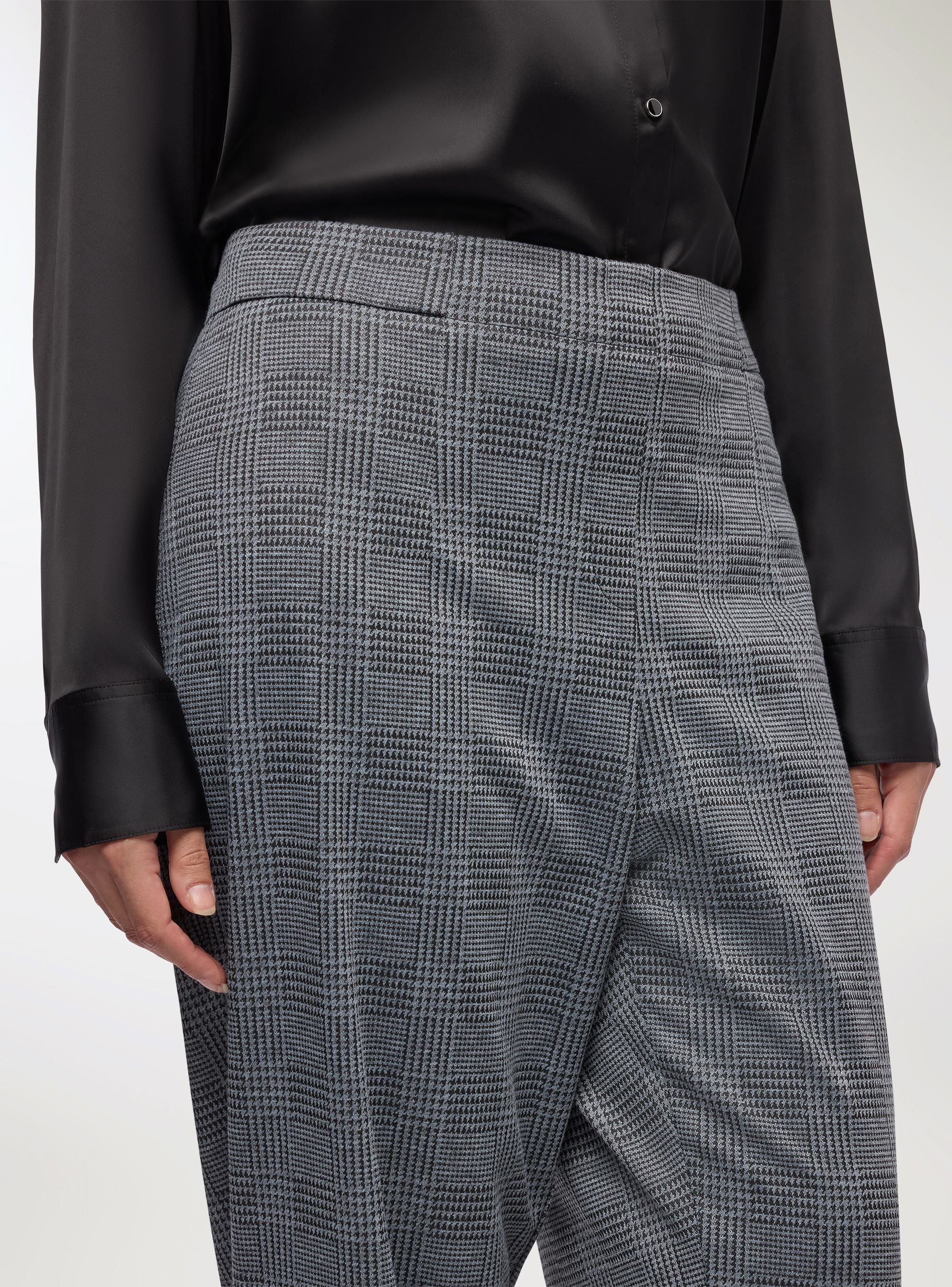 Pantallona të gjata për gra me një përshtatje të rregullt, të përshtatshme për raste formale ose për zyrë. Kanë një model princi i Uellsit që i jep një prekje sofistikuese dizajnit. Pajisur me një brez elastik në pjesën e pasme. Të përshtatshme për t'u kombinuar me këmisha ose bluzë për një pamje profesionale. Gjatësia është e plotë dhe prerja është e drejtë, duke garantuar rehati dhe stil.Detajet