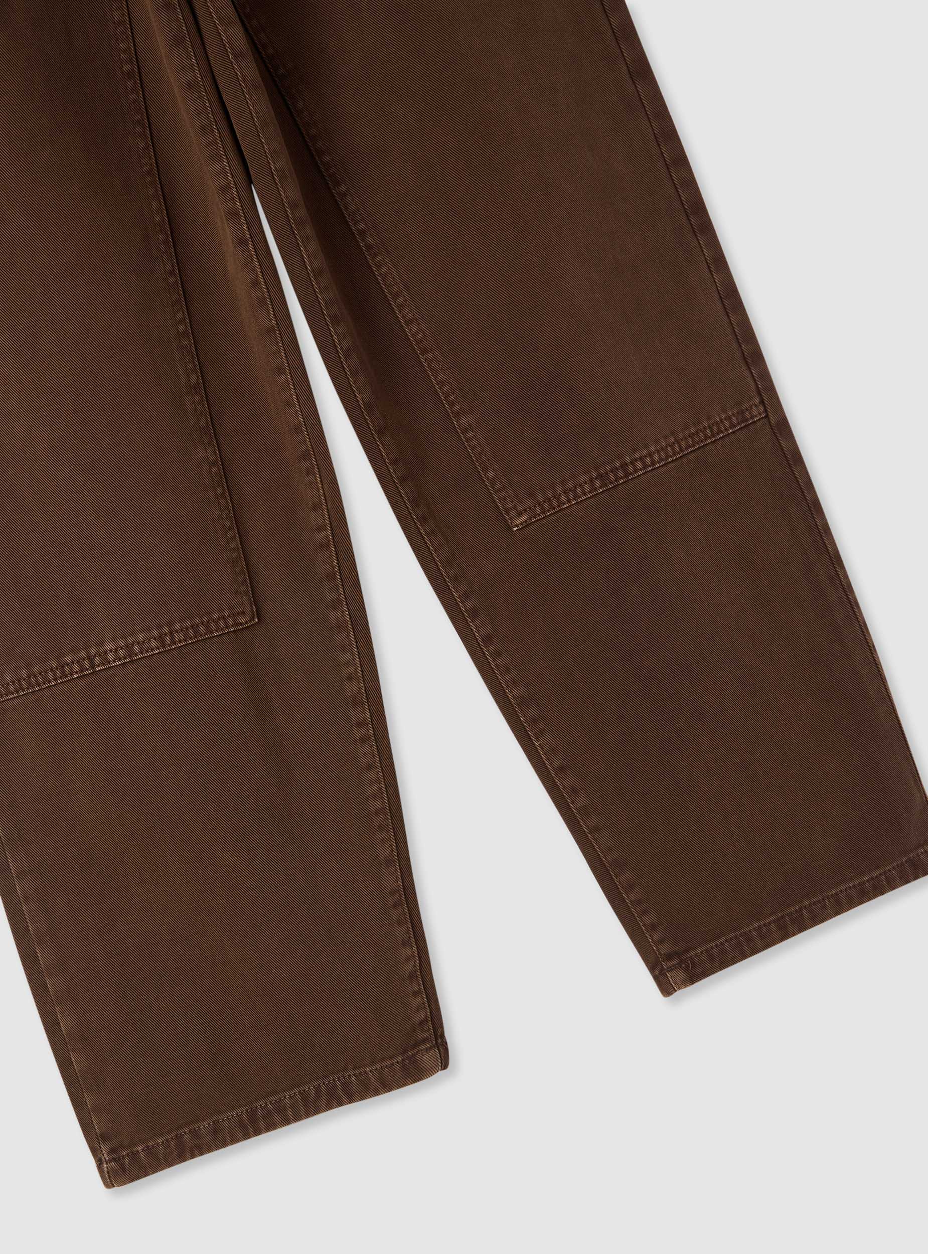 Pantallona për burra model carpenter me ngjyrë të vetme, të dizajnuara për një look casual dhe street. Përshtatje regular me këmbë të drejtë dhe përforcim me dyfishtë në gju për një stil workwear. Mbyllje me buton dhe zinxhir, rripa në bel dhe xhepa praktikë të përparme plus xhepa të aplikuar anësorë. Të përshtatshme me bluzë sportive dhe këpucë sportive ose me këmishë për veshje ditore.Detajet