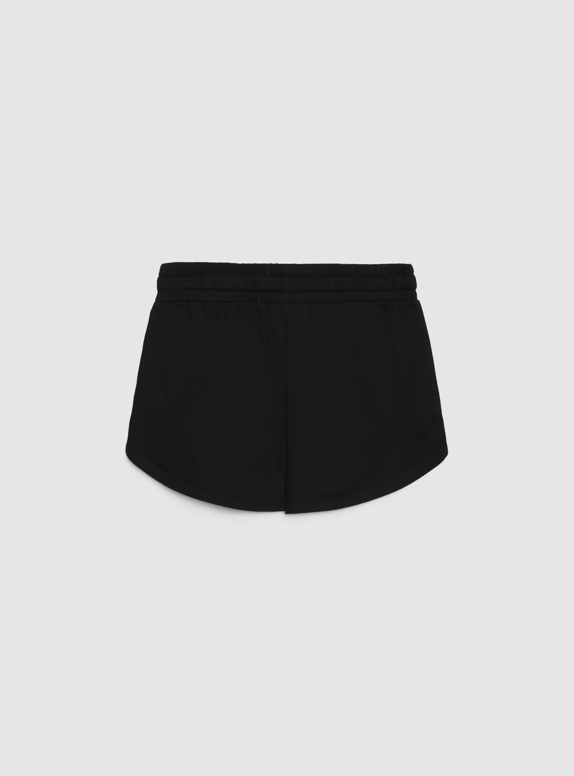 Pantallona të shkurtra për gra me ngjyrë të njëtrajtshme, me brez elastik dhe lidhëse të rregullueshme, të dizajnuara për kohën e lirë dhe stërvitjen. Model i shkurtër me fund të rrumbullakët dhe xhepa të vegjël anësorë të ngushtë që mbajnë vetëm thelbësoren. Përshtatje e rregullt që siguron rehati dhe liri lëvizjeje. Lehtë për t’u kombinuar me bluzë apo xhaketë të lehtë dhe atlete për një pamje casual dhe sportive. Tkanje e lehtë.Detajet