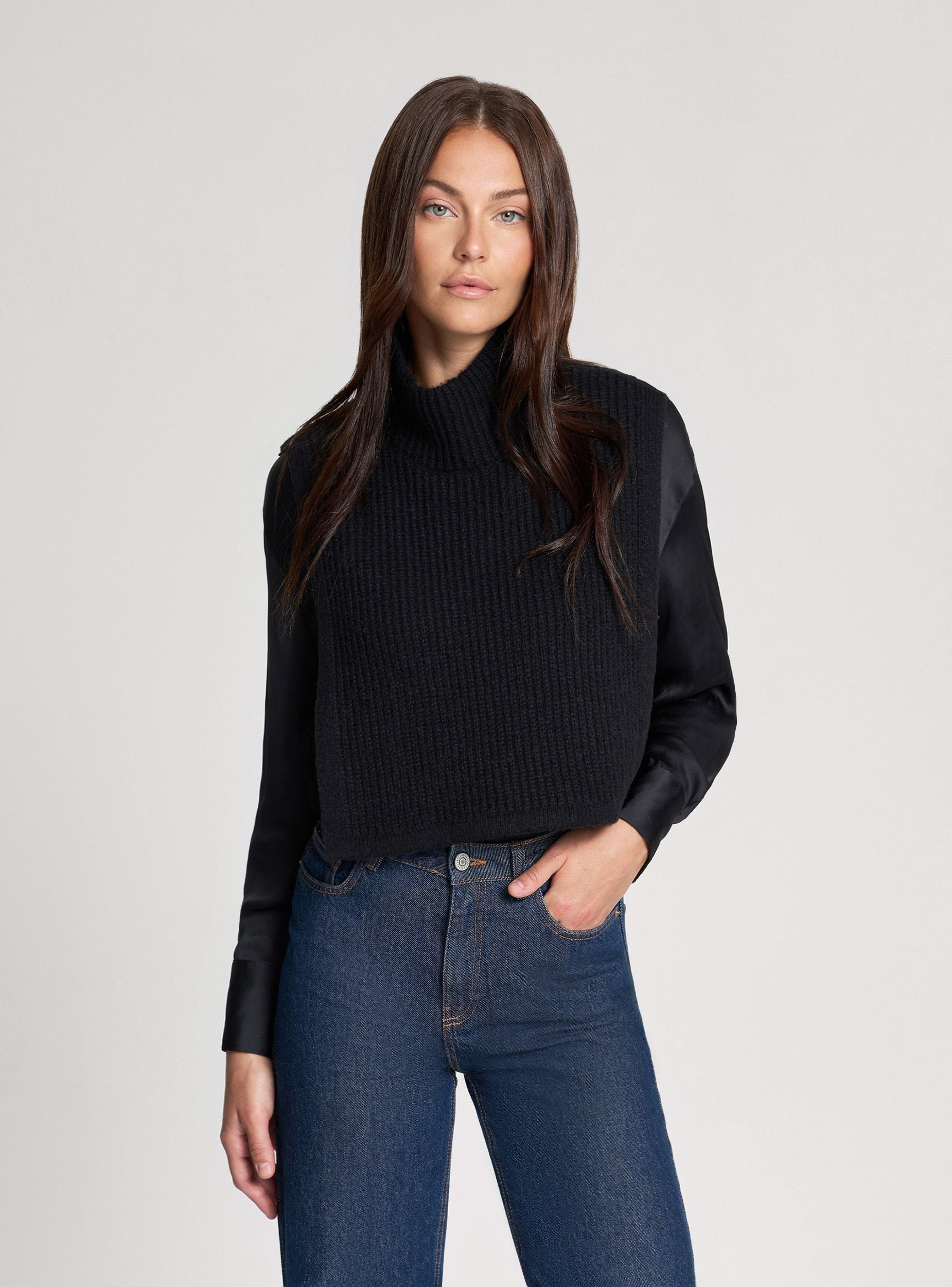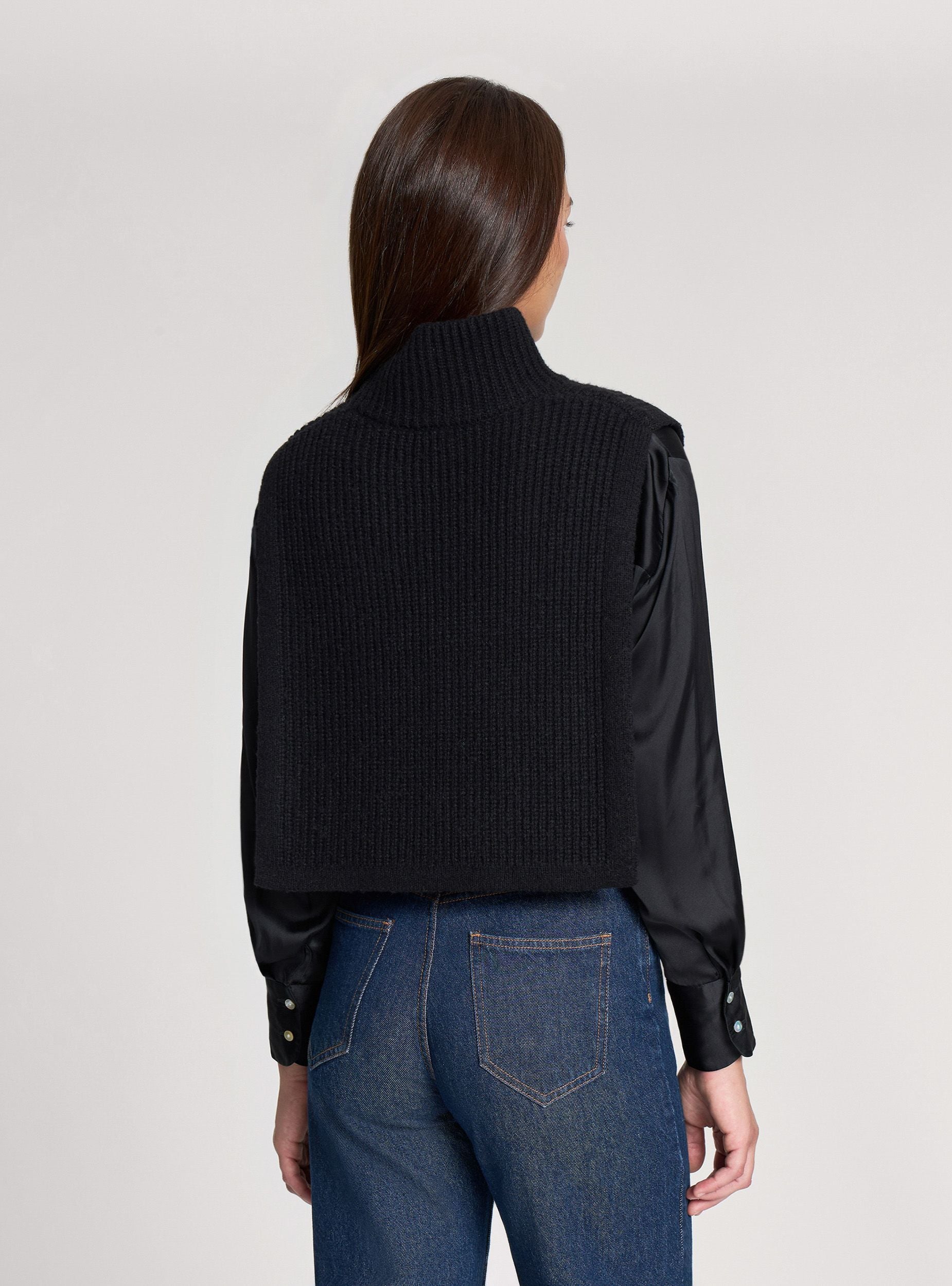 Ponço për gra me thurje me fije dhe qafë të lartë përmbi. I përshtatshëm për t’u veshur mbi pallto ose blazer për të shtuar një prekje moderne dhe për t’u mbrojtur nga i ftohti. Praktik dhe i shumëanshëm, jep ngrohtësi pa zënë shumë vend, ideal për të kompletuar pamje urbane ose casual gjatë muajve më të ftohtë.Detajet