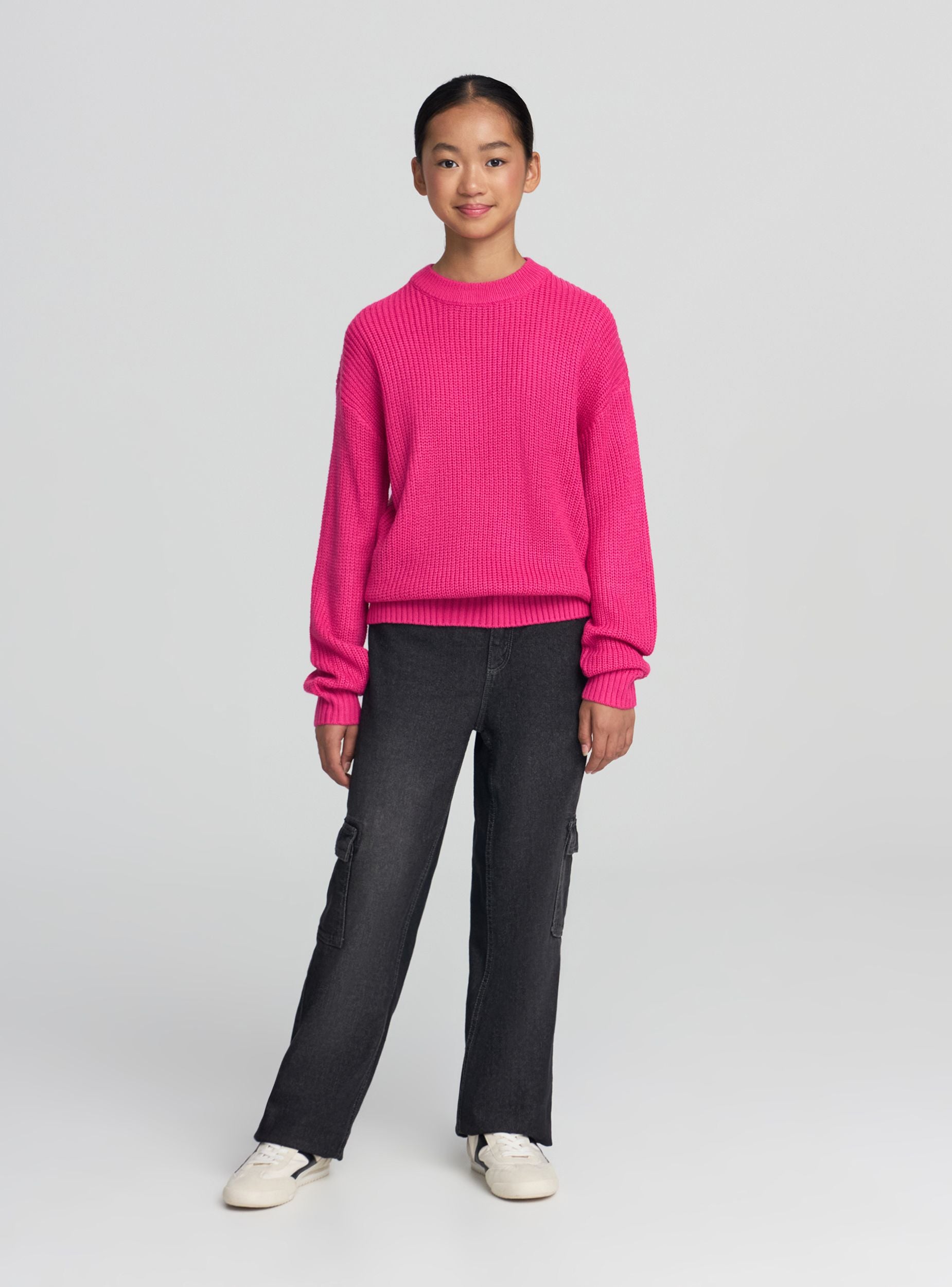 Fustani për vajza i përshtatshëm për sezonin më të freskët, i karakterizuar nga një punim me tela që i jep një prekje moderne dhe të shumëanshme. Modeli ka një përshtatje të rregullt, mëngë të gjata dhe një qafë të lartë, e përshtatshme për t'u veshur si në shkollë ashtu edhe në kohën e lirë. E lehtë për t'u kombinuar me xhinse ose funde, përshtatet në shumë raste të përditshme, duke ofruar komoditet dhe stil të përjetshëm.Detajet