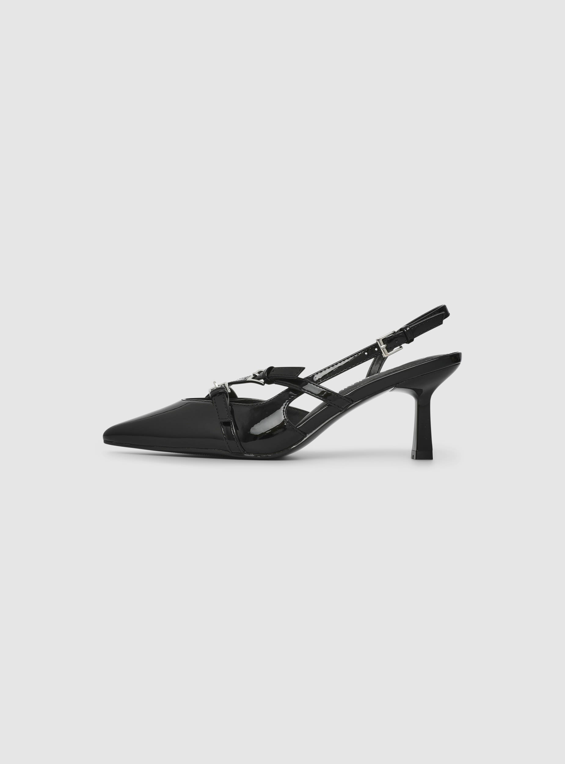 Këpucë për gra me dizajn décolleté slingback, ideale për evente dhe pamje zyre. Majë e mprehtë dhe dy rripa me fije të rregullueshme sigurojnë stabilitet dhe stil. Takë mesatare e zgjeruar, siluetë elegante që zgjat figurën. Përfundim me efekt të shkëlqyer, perfekte me kostume, funde midi ose xhinse me prerje të drejtë. Mbyllje me fije dhe përfundim me ngjyrë uniforme. Lartësia e takës 7.50 cm.Detajet