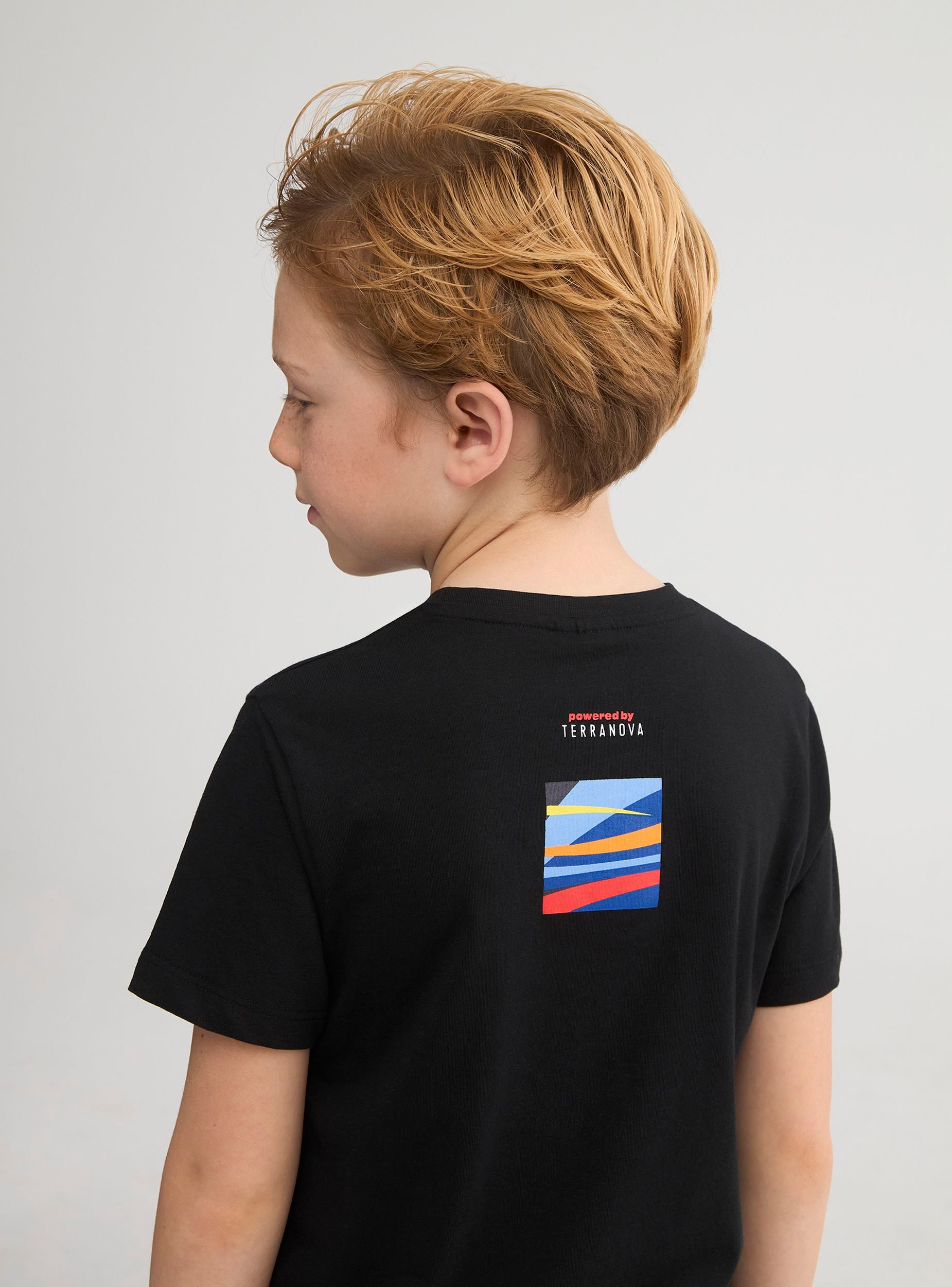 Të brendshme për fëmijë në xhersi pambuku me logon Misano World Circuit në pjesën e përparme dhe strip në pjesën e prapme. Modeli me qafë të rrumbullakët dhe mëngë të shkurtra. Përshtatja është e rregullt.Detajet
