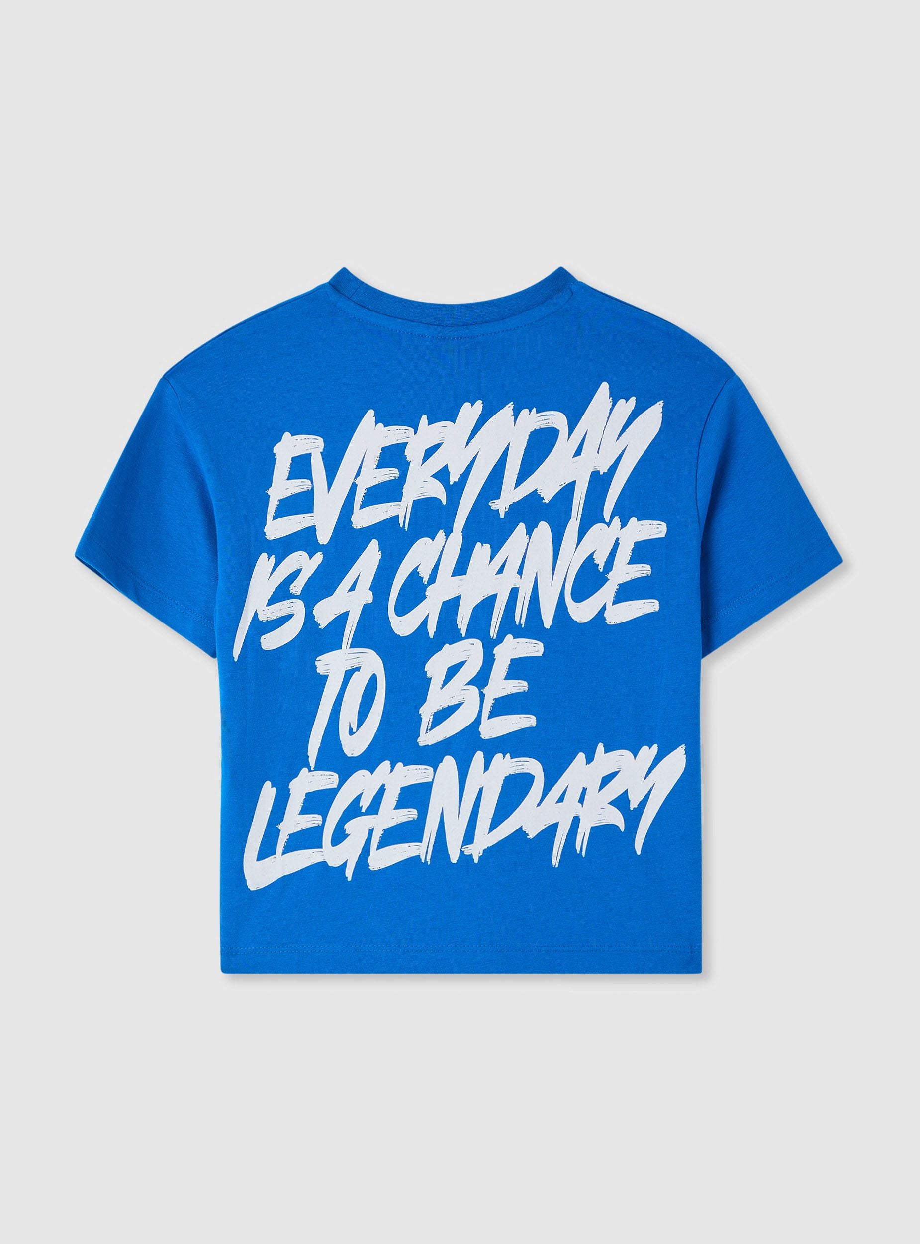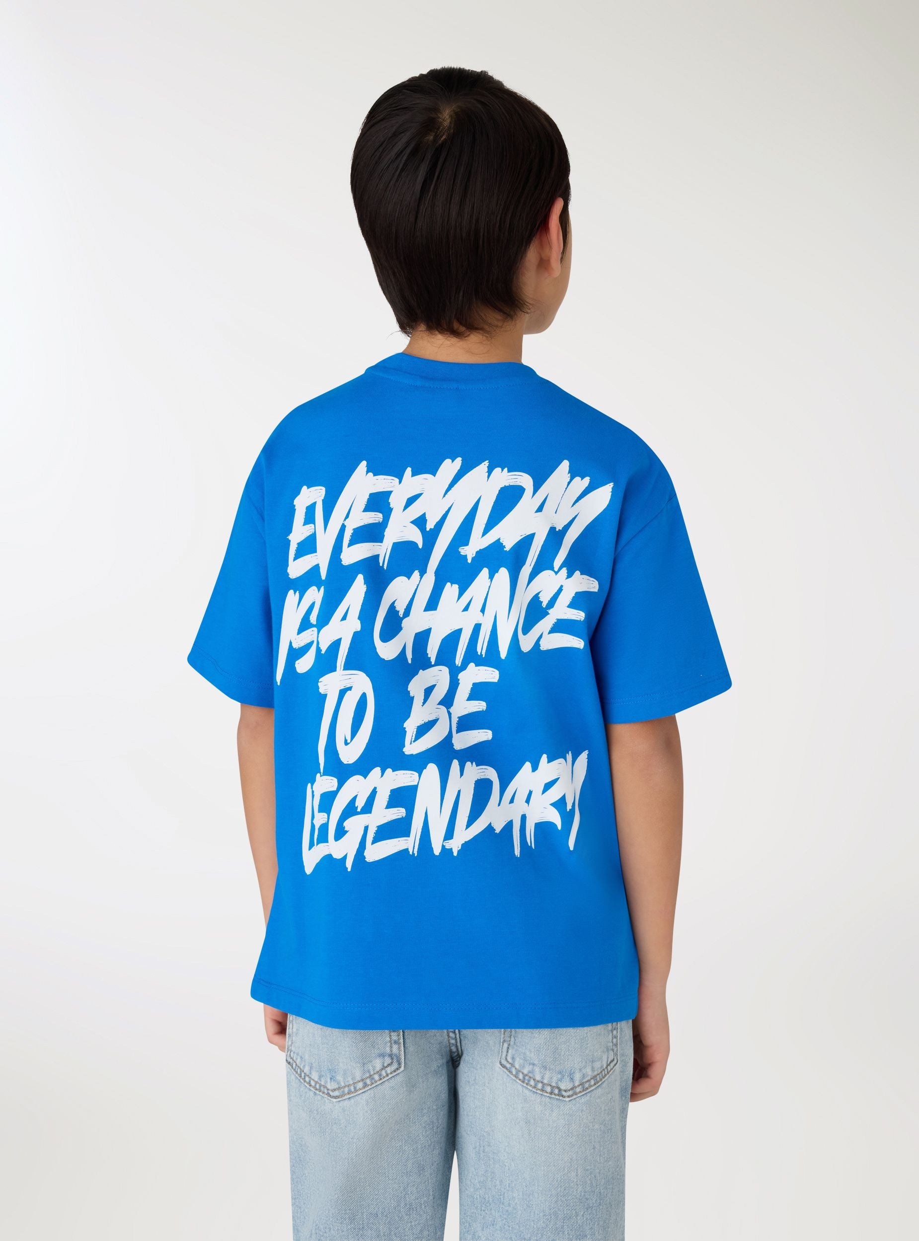 Triko fëmijësh me mbishkrim në pjesën e përparme dhe mbishkrim të madh në pjesën e pasme. Me qafë rrethore dhe mëngë të shkurtra, ideale për shkollë dhe kohën e lirë. Përshtatje normale, e lehtë për t’u kombinuar me xhinse ose pantallona të shkurtra dhe atlete. Dizajn i thjeshtë me shkronja në kontrast që i japin karakter pamjeve të përditshme.Detajet