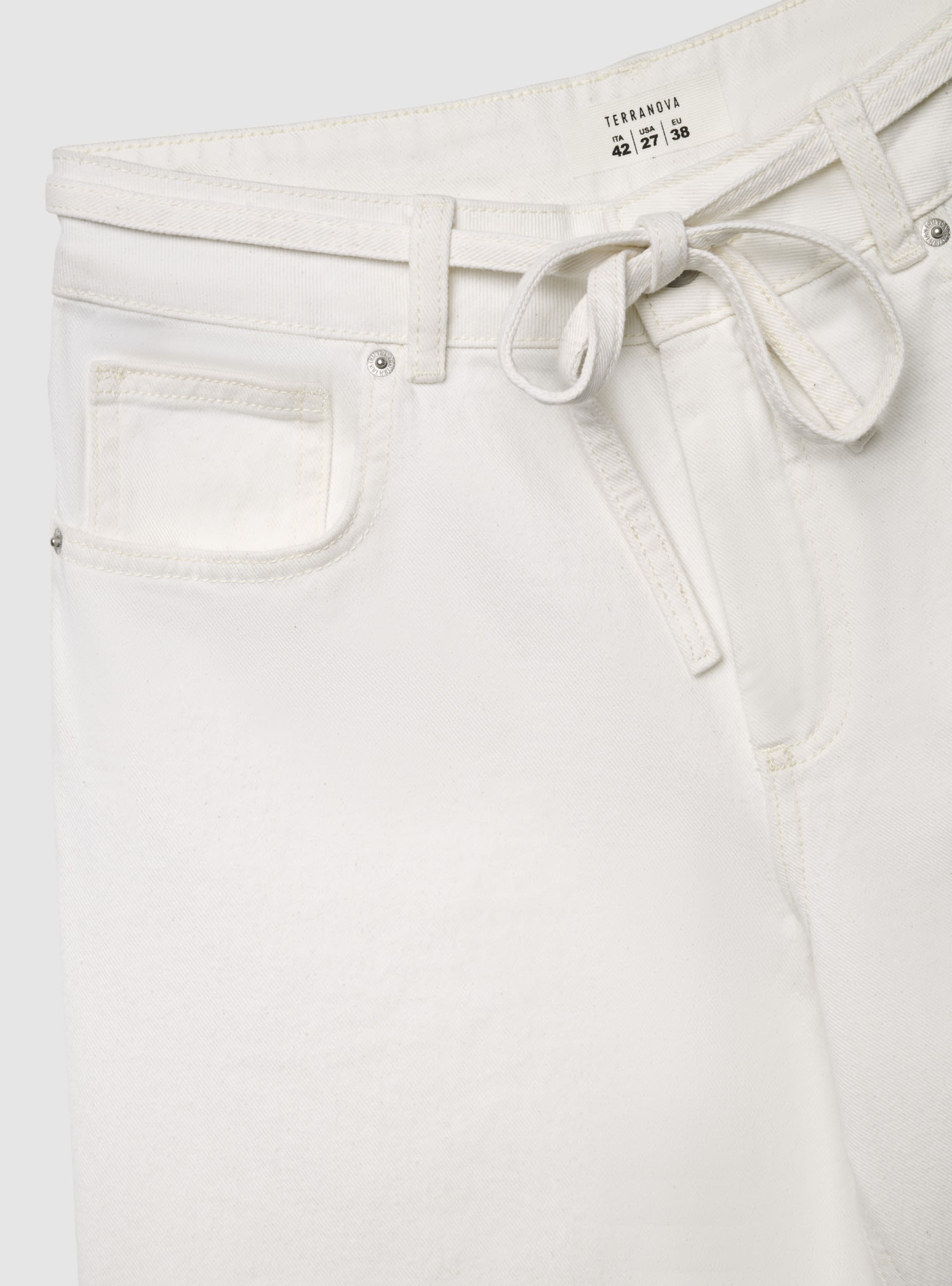 Ženske bermuda pantalone u jednobojnom modelu, idealne za ležerne i urbane kombinacije. Struk sa petljama i tankim kaišem za vezivanje koji ističe siluetu. Zatvaranje na dugme i rajsferšlus, ravnog kroja sa širokim donjim delom. Praktični džepovi sa strane sa malim džepićem i zadnji našiveni džepovi, savršene uz majicu i patike ili košulju i sandale.Detalji