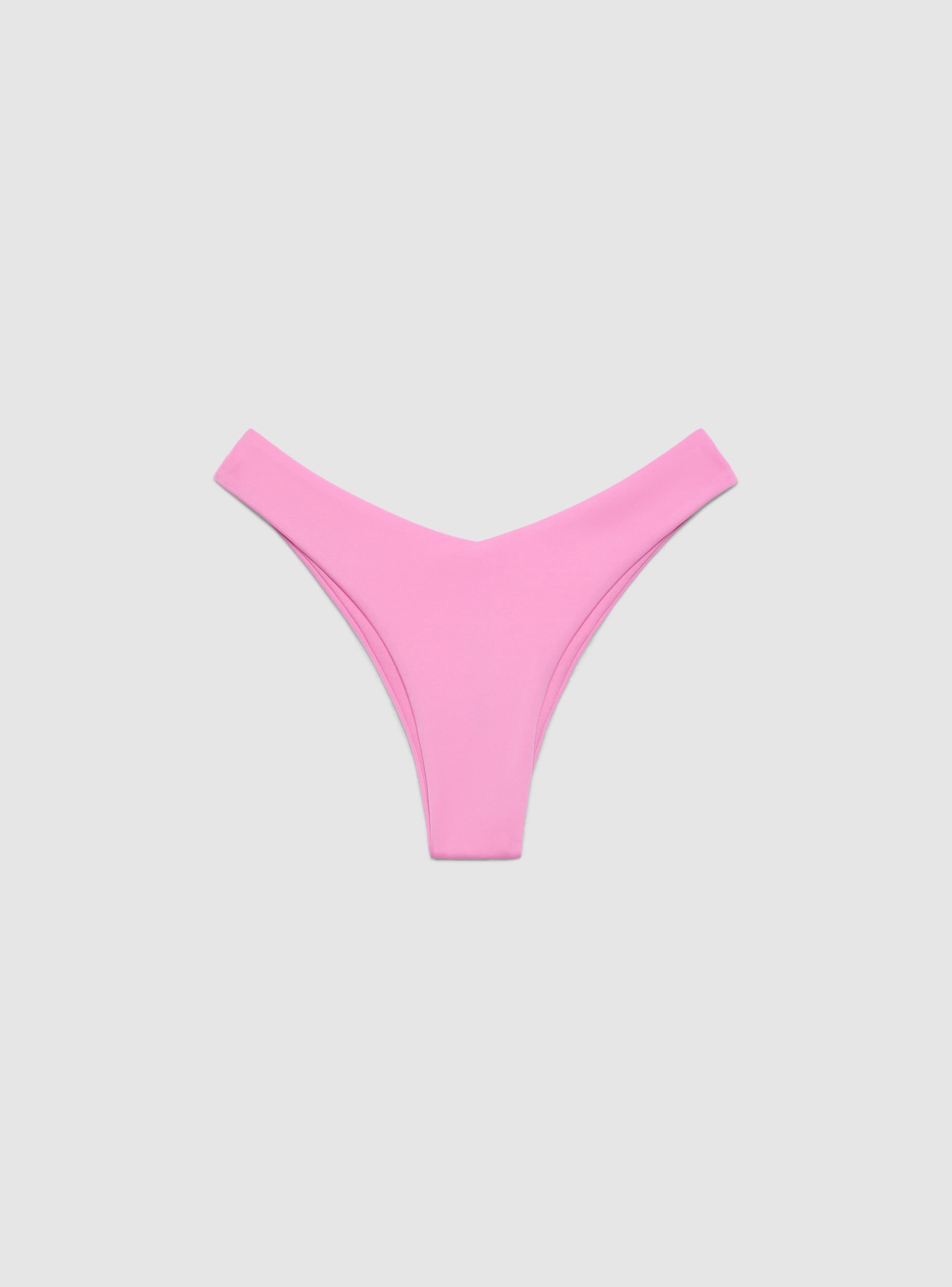 Ženski brazilki bikini slip u V kroju, sa visokim izrezom koji ističe siluetu. Jednostavan model u jednobojnoj varijanti upotpunjen je detaljem sa natpisom sa strane za sportski šmek. Dizajn bez kopčanja, udoban za nošenje na plaži ili bazenu i lako se kombinuje sa odgovarajućim trokutastim ili traka topom.Detalji