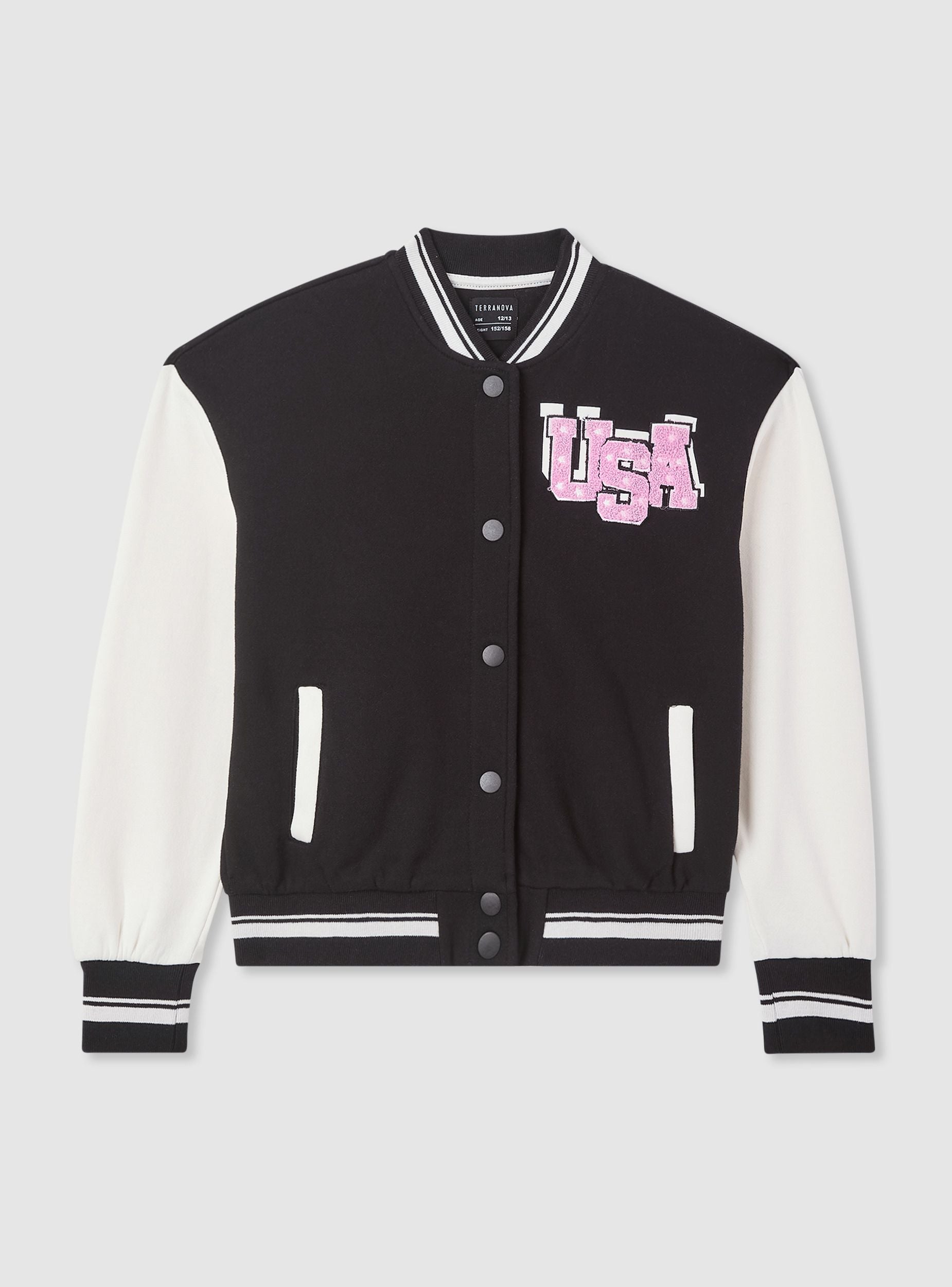 Bombažna teška dukserica za devojčice sa štampama sa prednje i zadnje strane u kolidž stilu. Idealna za ležeran i sportski izgled, ovaj komad ima zatvaranje na pritiske i okovratnik sa trakama. Duge rukave i dizajn sa štampama čine ovu duksericu savršenom za upotpunjavanje modernih i dinamičnih odevnih kombinacija. Odlična za kombinovanje sa farmerkama ili sportskim pantalonama, pruža udobnost i stil u svakoj prilici.Detalji