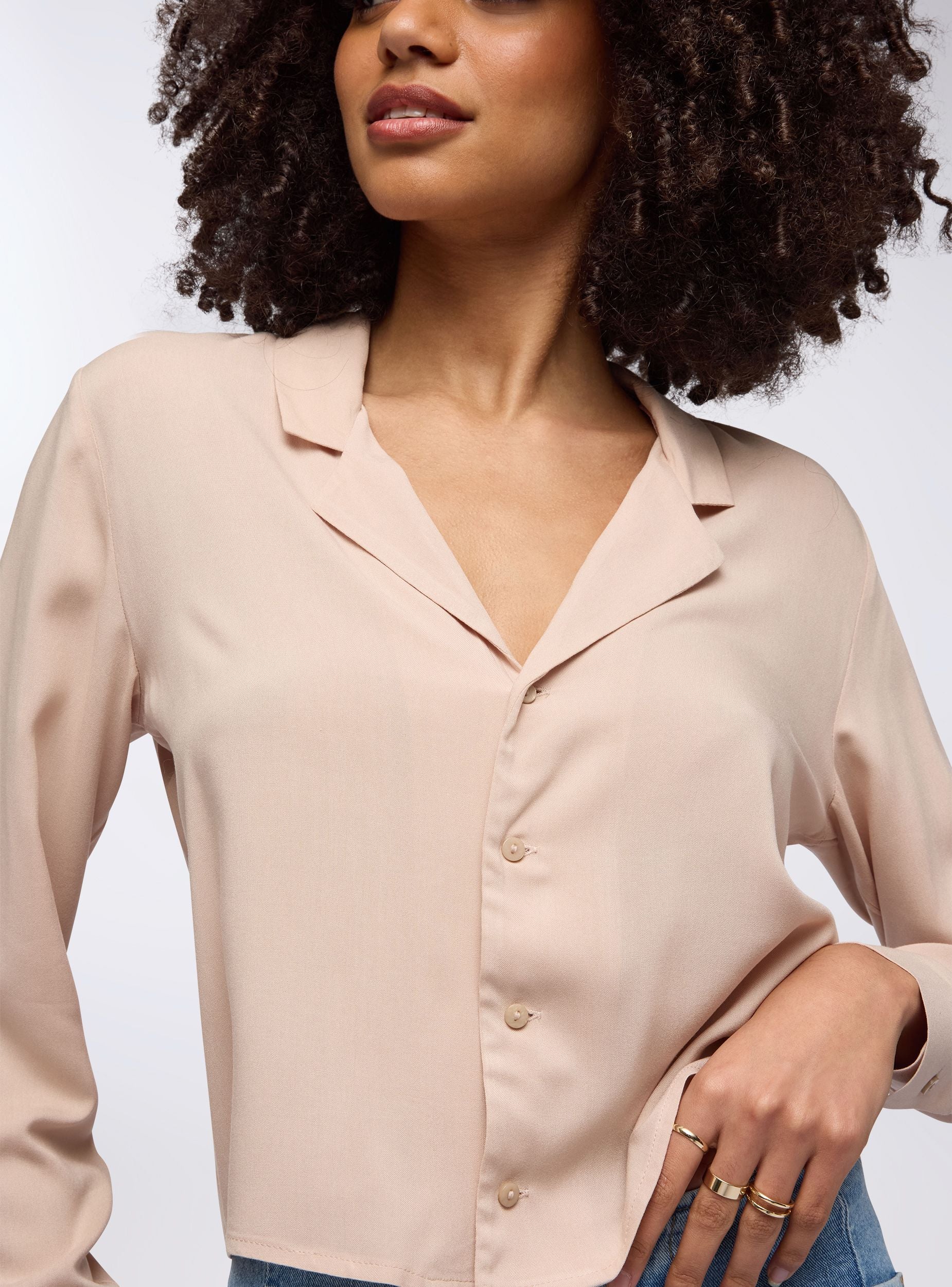 Camicia da donna dal design crop in viscosa, ideale per un look fresco e contemporaneo. Caratterizzata da una linea a tinta unita che dona sobrietà ed eleganza, questa camicia presenta un raffinato colletto a revers che esalta il décolleté con un tocco di femminilità. Dotata di una fila di bottoni che attraversa il davanti, aggiunge un elemento sofisticato e di stile. Le maniche lunghe sono pensate per garantire una vestibilità comoda, adattabile a diverse stagioni. Perfetta per abbinamenti versatili, è un capo che si presta sia a look formali che a combinazioni più casual, portando sempre un tocco di stile.Detalji