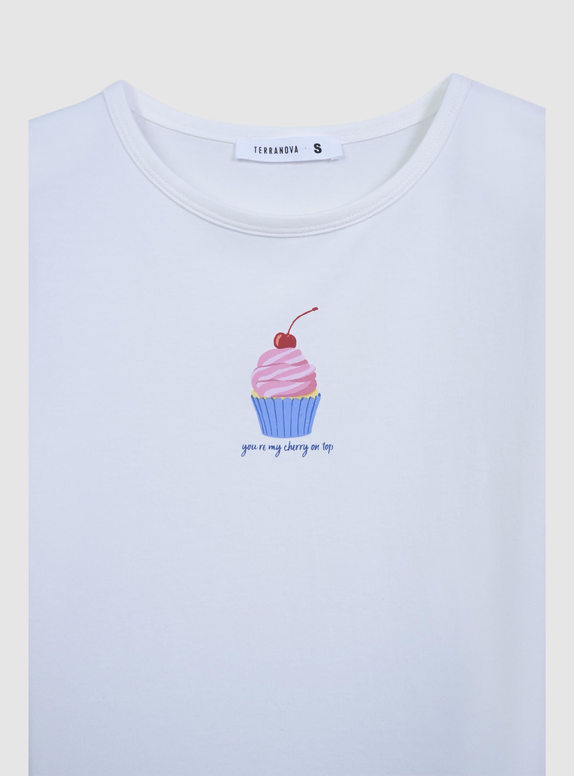Ženska crop majica sa printom kolačića i centralnim natpisom, idealna za ležerne i opuštene izglede. Model ima okrugli izrez i kratke rukave, savršena za kombinovanje sa farmerkama ili suknjama visokog struka za mladalački i svež outfit. Kroj crop naglašava siluetu, dok print dodaje razigran i originalan dodir, čineći je pogodnom za različite prilike.Detalji