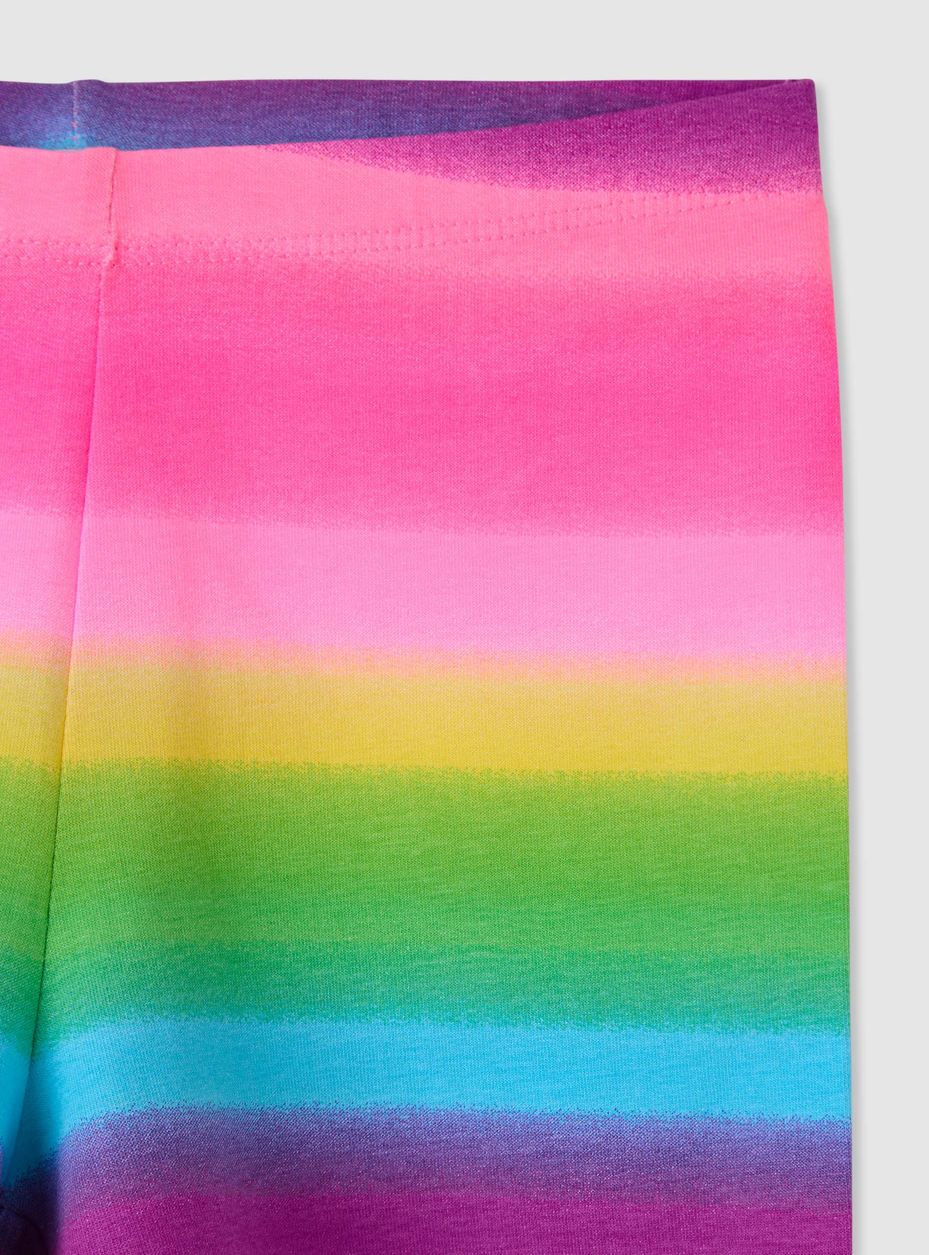 Kratke helanke za devojčice sa šarenim prugastim printom, idealne za sport, igru i slobodno vreme. Visoki pojas sa elastičnom trakom obezbeđuje udobno i prijanjajuće pristajanje, dok jednostavan kroj bez kopči i džepova olakšava pokrete. Savršene uz majicu i patike za praktičan i živahan izgled.Detalji