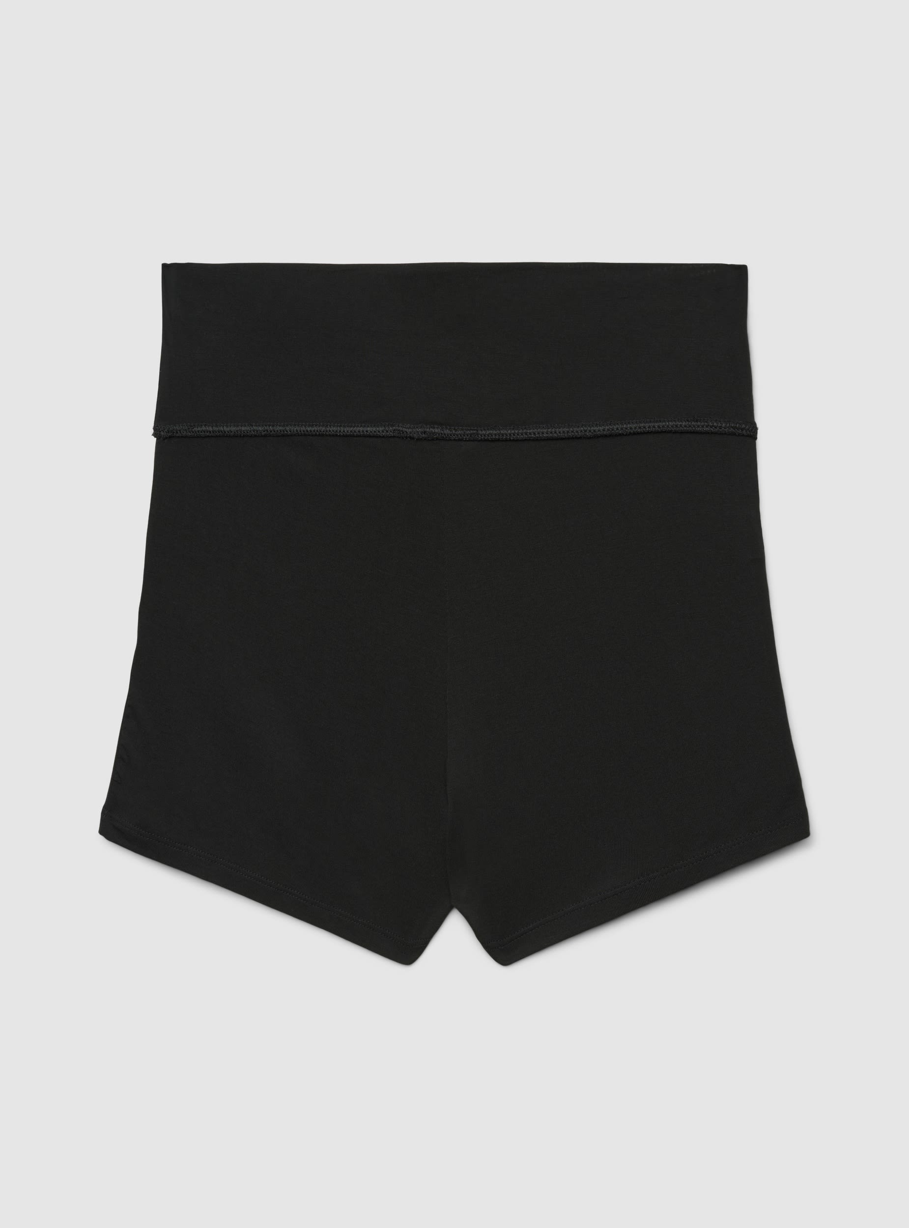 Kratke jednobojne ženske helanke. Model culotte dizajniran da prati obline sa uskim i udobnim krojem. Visoki struk sa širokim pojasom pruža podršku bez stezanja, dok kratak rez ističe nogu. Bez džepova i zatvarača, idealne su za lagane treninge, slobodno vreme ili ispod maxi majica i dukseva za sportski i praktičan izgled.Detalji
