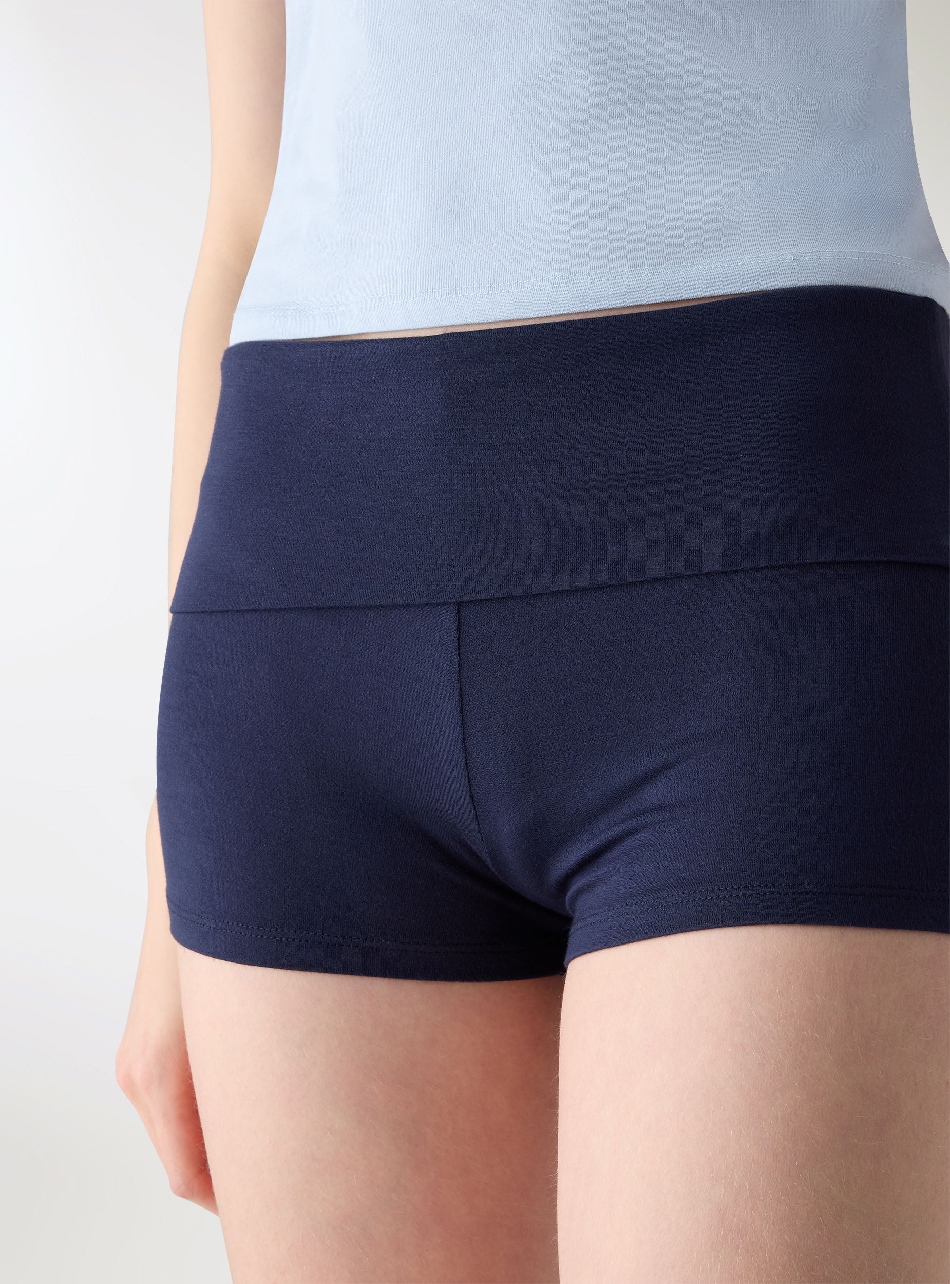 Kratke ženske helanke u jednobojnoj varijanti. Model culotte dizajniran da prati obline sa prijatnim i pripijenim krojem. Visok struk sa širokim pojasom pruža podršku bez stezanja, dok kratki kroj ističe nogu. Bez džepova i zatvarača, idealne su za lagane treninge, slobodno vreme ili ispod maxi majica i dukseva za sportski i praktičan izgled.Detalji