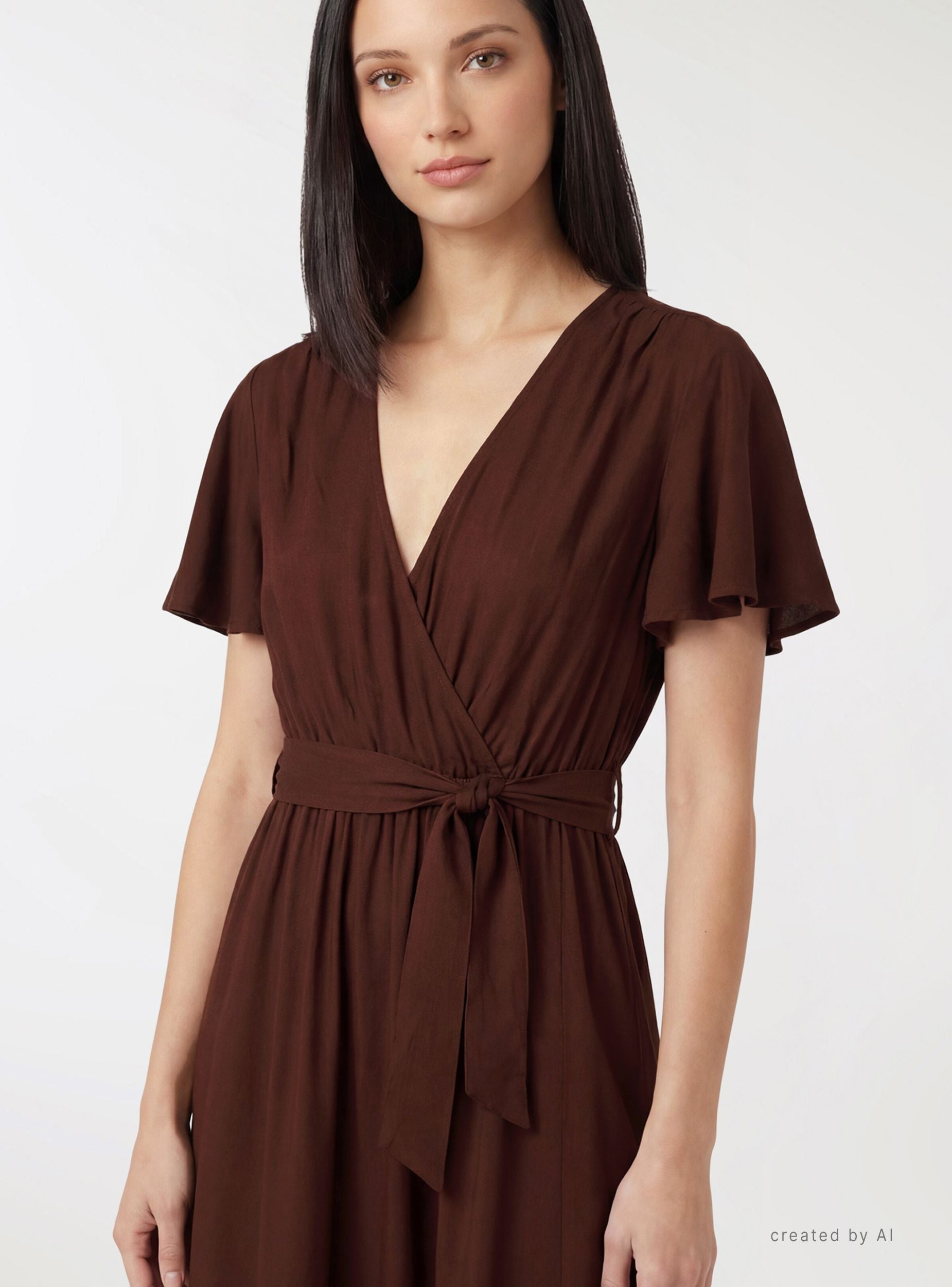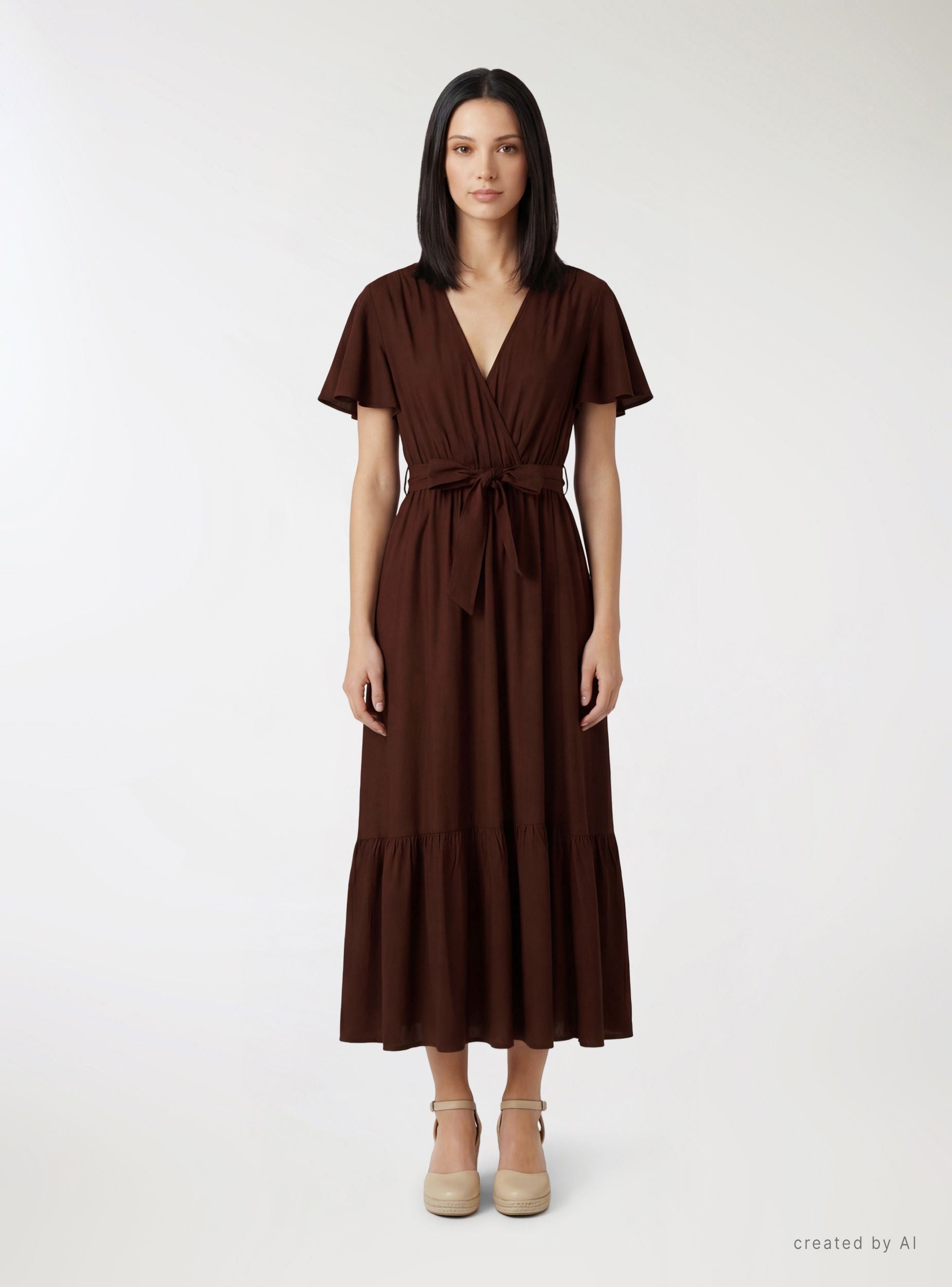 Duga haljina sa preklopom i pojasom - Kakao