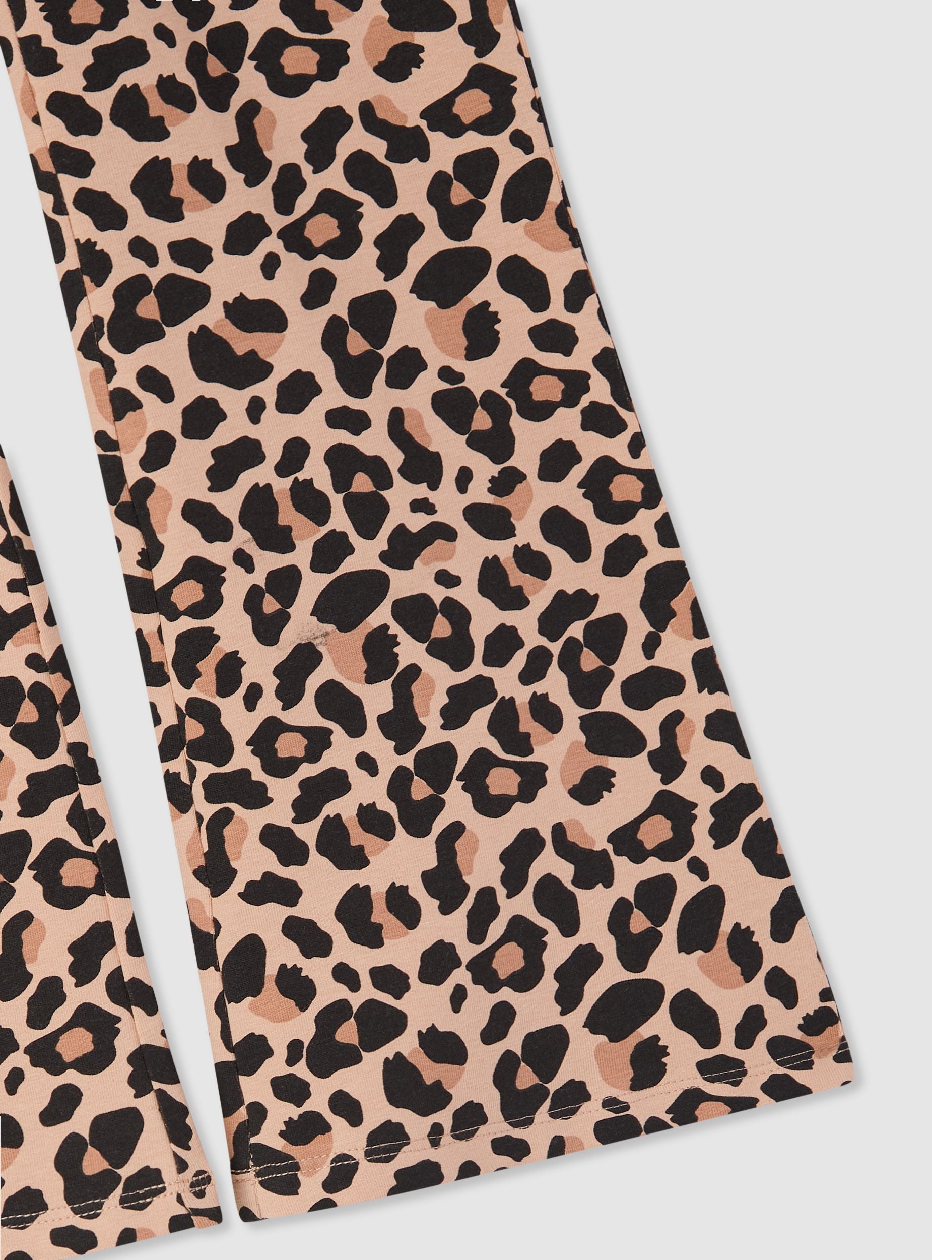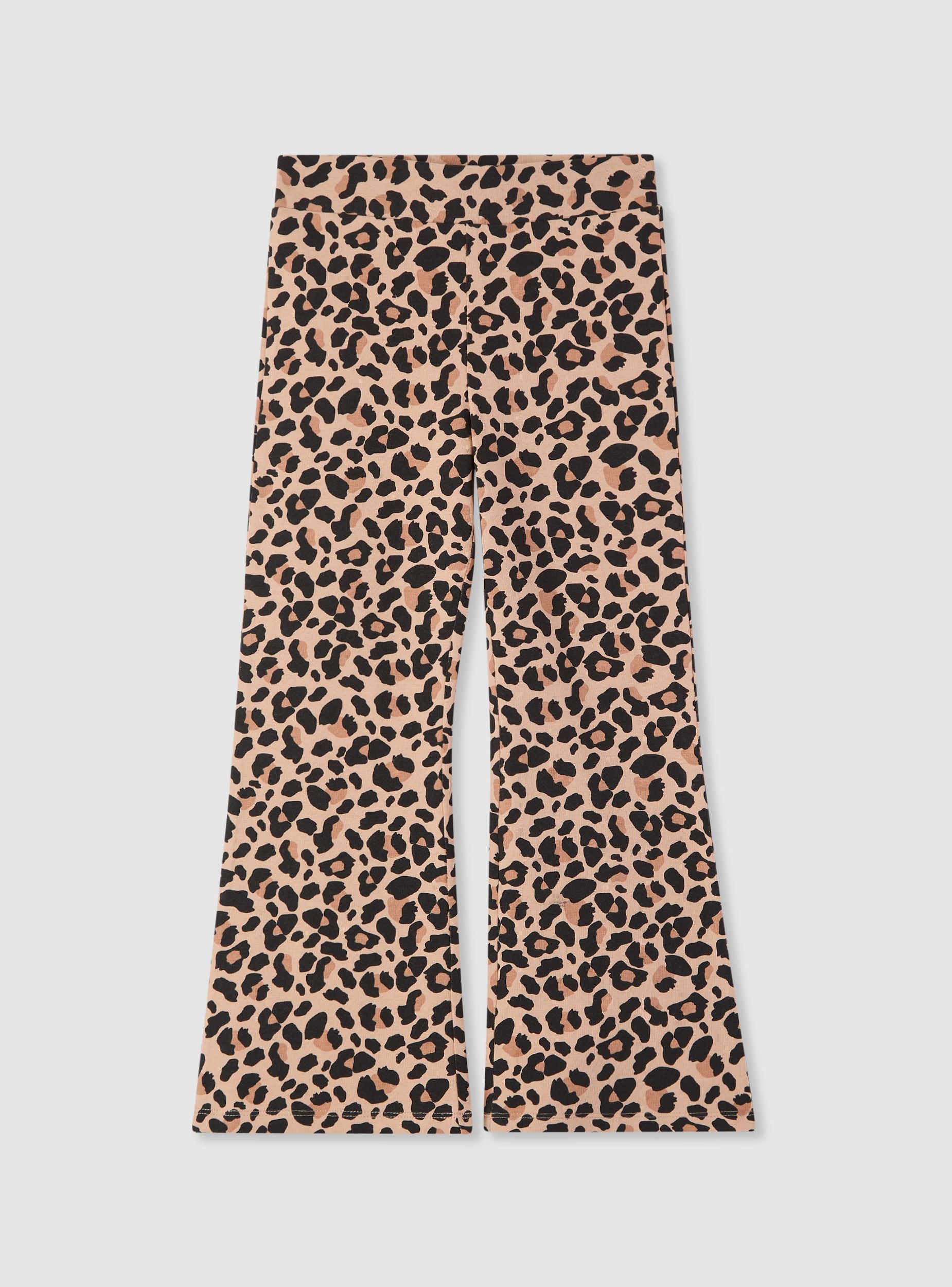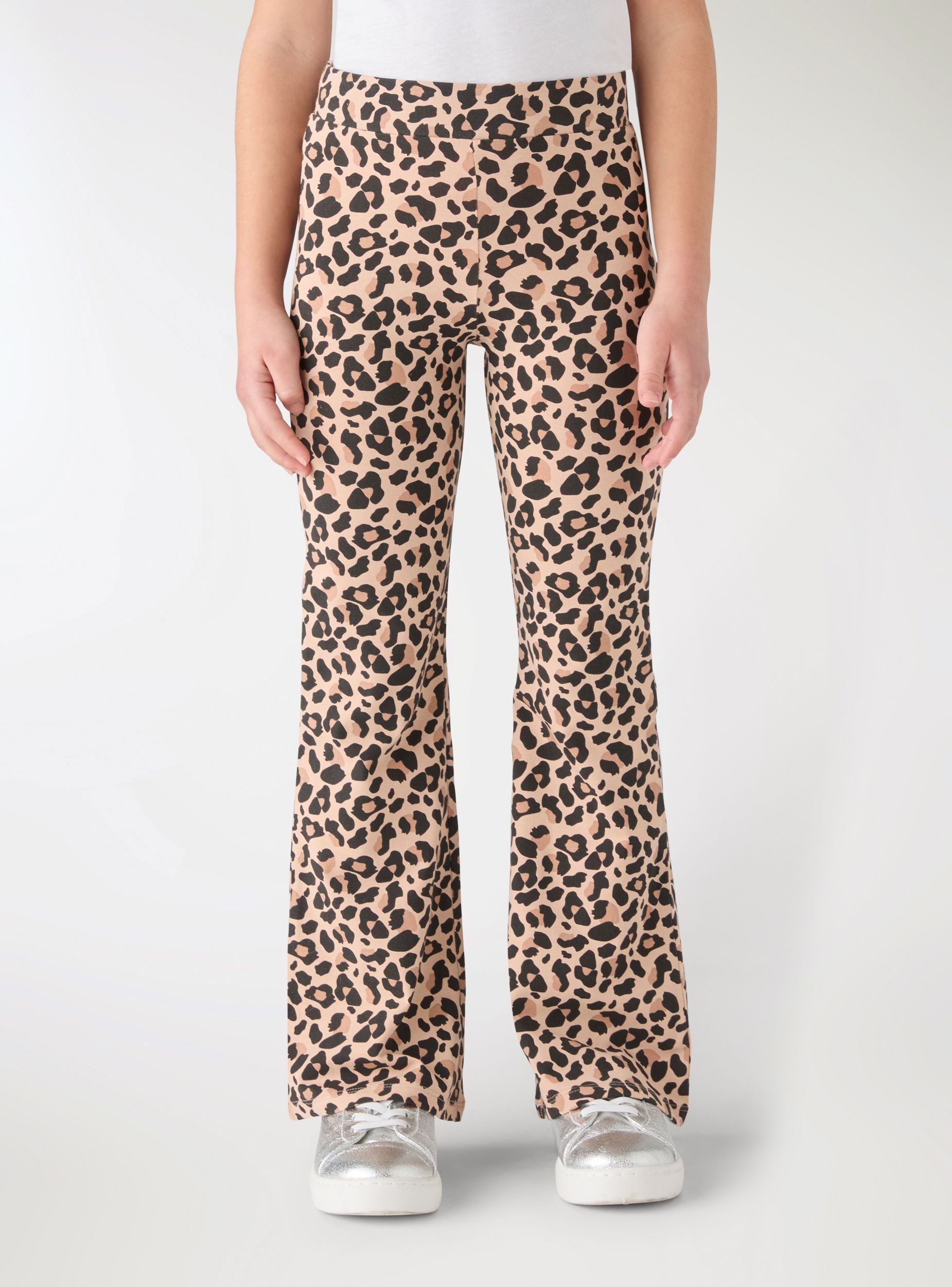 Helanke za devojčice sa animal printom po celom površini, idealne za davanje karaktera svakodnevnim odevnim kombinacijama. Dugi model sa nogavicama na zvono i visokim strukom sa elastičnim pojasom za udobno pristajanje. Lako se kombinuju sa duksericama, bluzama i majicama za školu ili slobodno vreme.Detalji