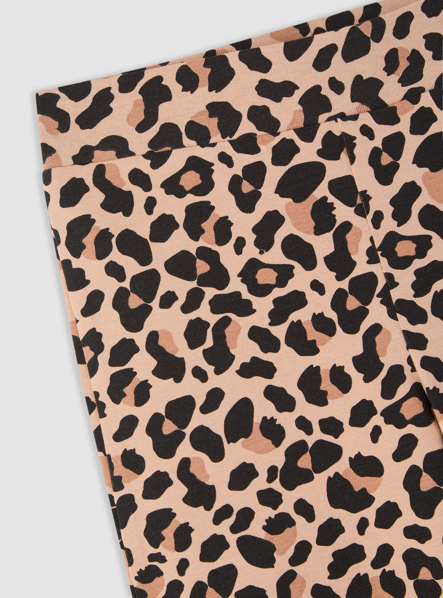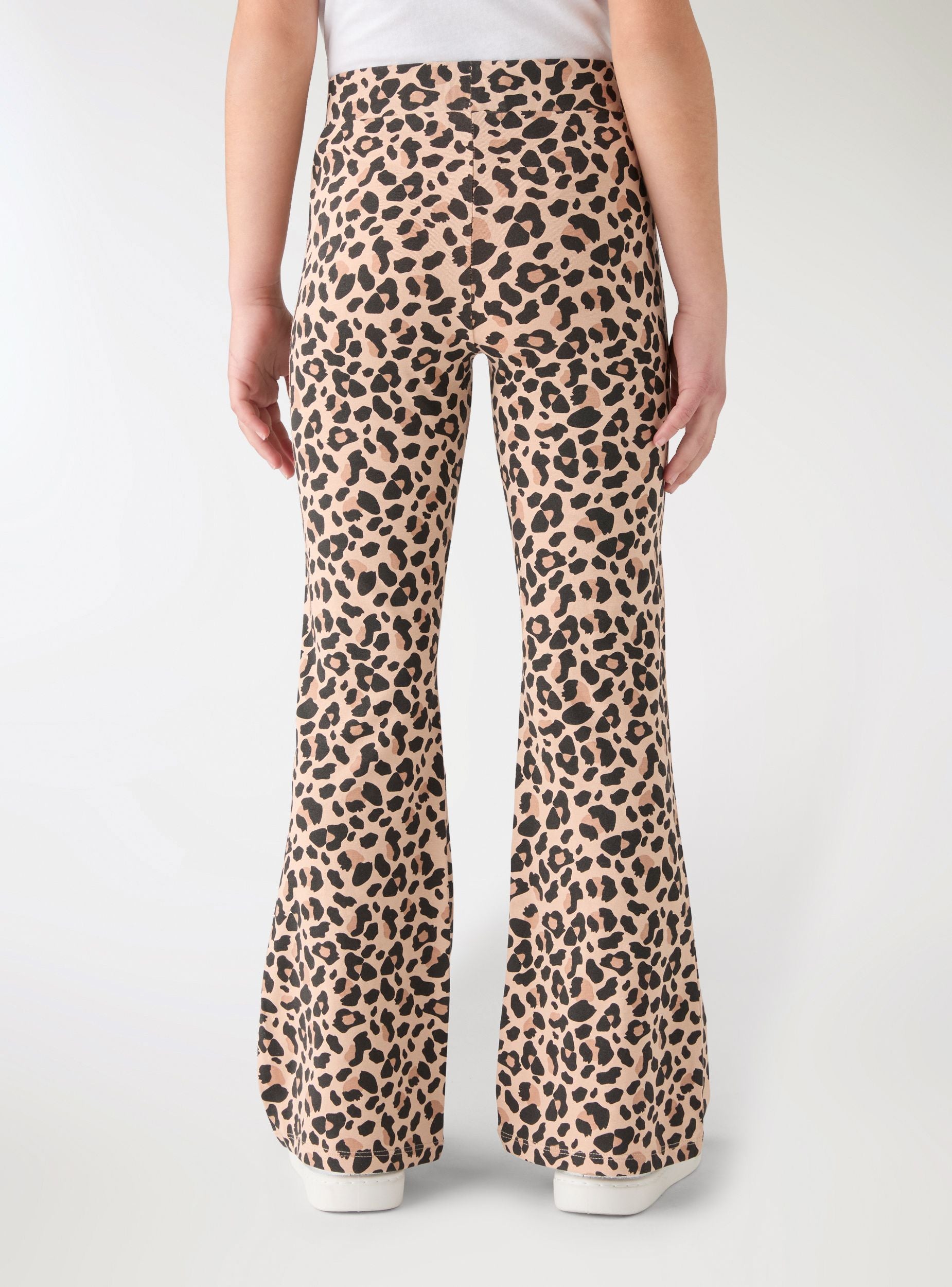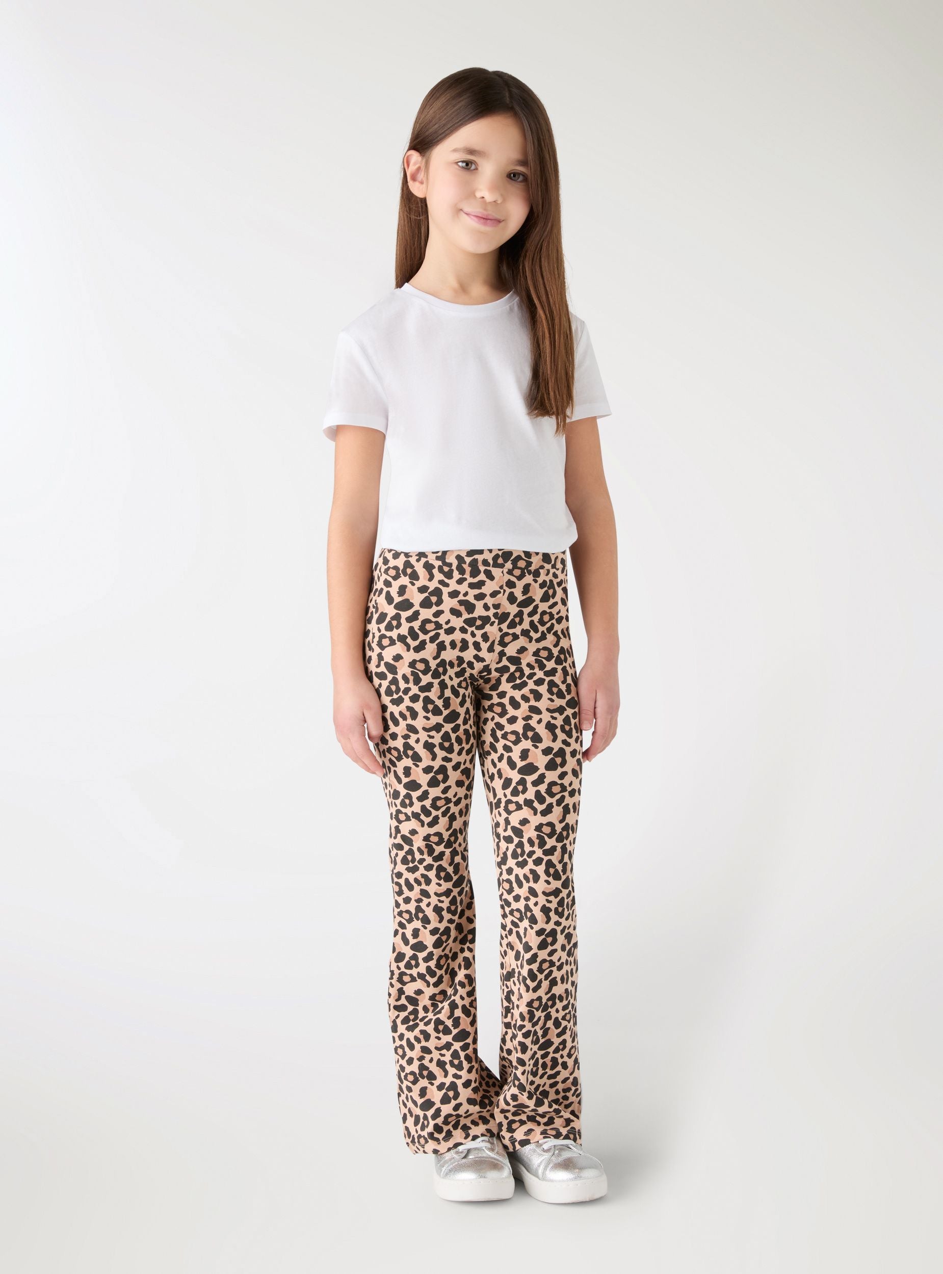 Helanke za devojčice sa animal printom po celom površini, idealne za davanje karaktera svakodnevnim odevnim kombinacijama. Dugi model sa nogavicama na zvono i visokim strukom sa elastičnim pojasom za udobno pristajanje. Lako se kombinuju sa duksericama, bluzama i majicama za školu ili slobodno vreme.Detalji