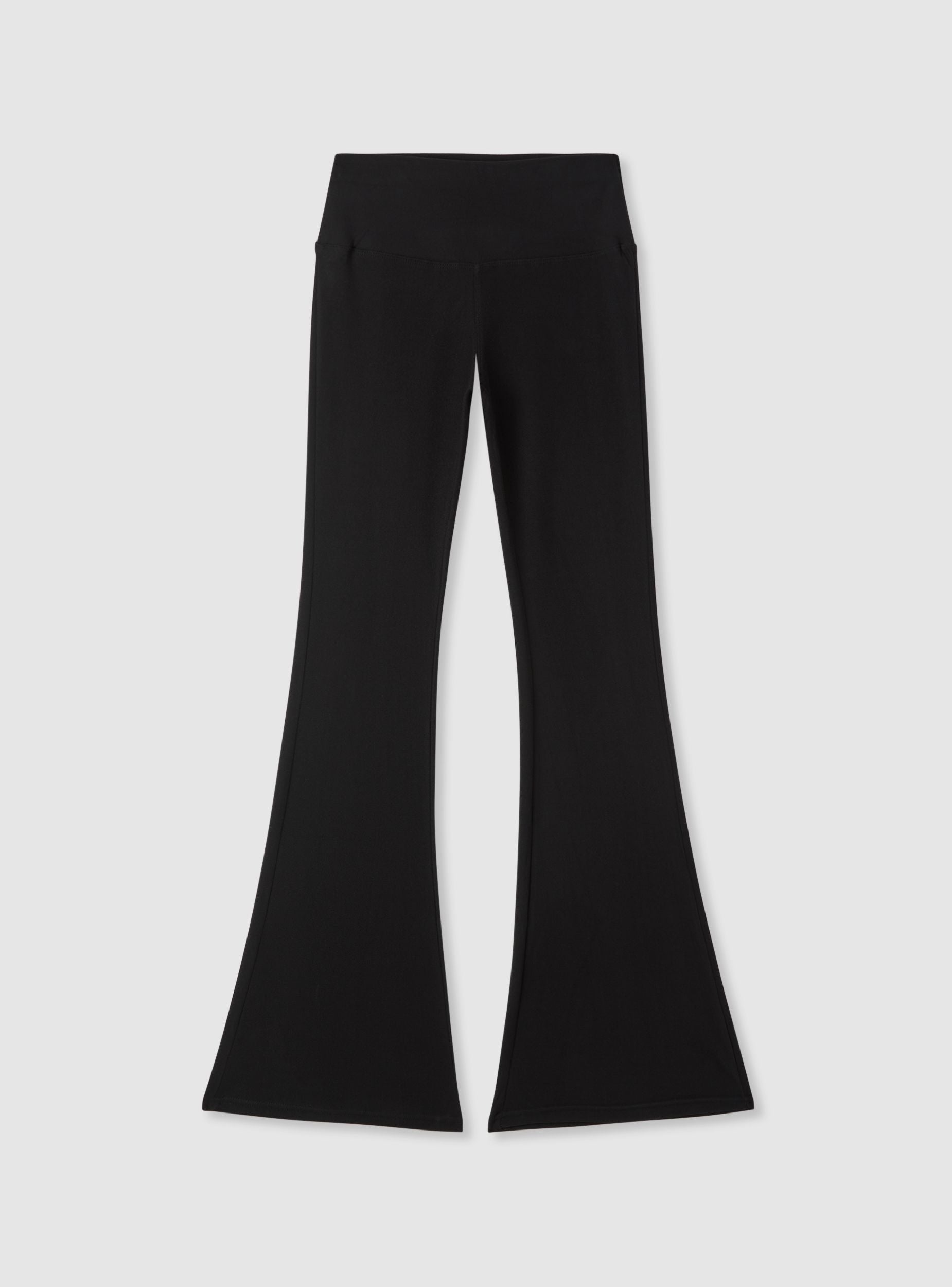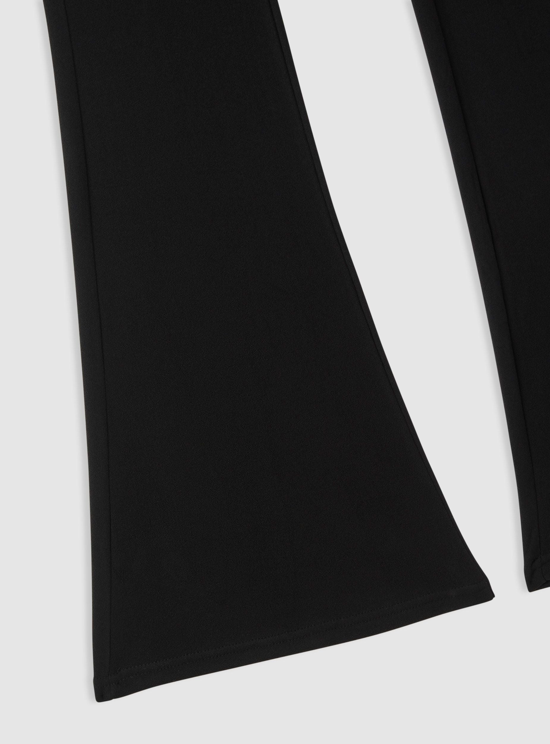 Ženske helanke u jednobojnoj varijanti, duge sa širokim nogavicama na dnu koje vizuelno izdužuju figuru. Visoki pojas sa elastičnom trakom obezbeđuje udobnost i podršku tokom celog dana. Minimalistički dizajn bez džepova i zatvarača, savršen u kombinaciji sa duksericama i patikama za sportski izgled ili sa košuljama i blejzerima za pažljiviji urbani stil.Detalji