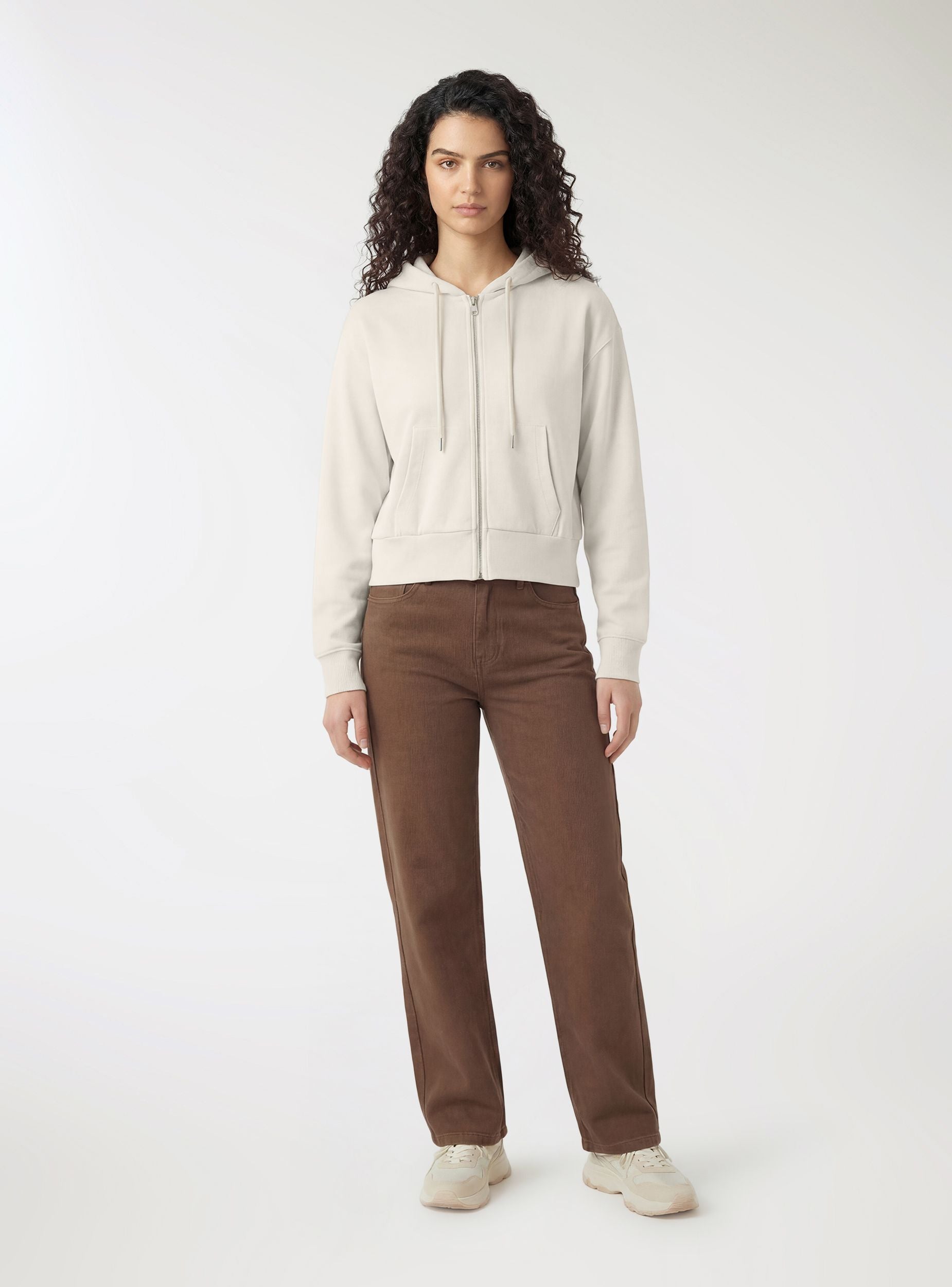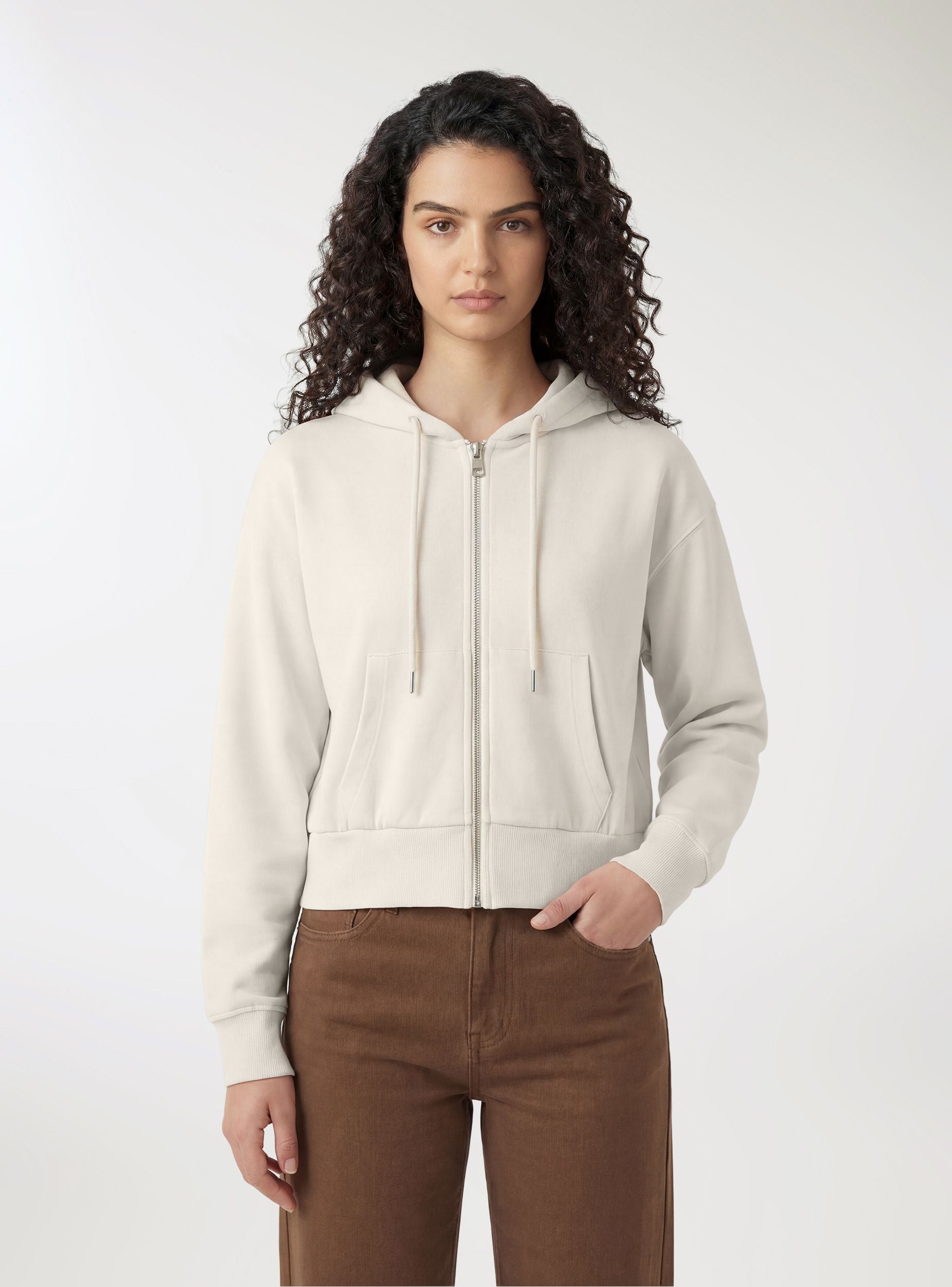 Ženska dukserica sa kapuljačom i prednjim rajsferšlusom, idealna za slobodno vreme i urbani stil. Model u jednobojnoj varijanti sa prednjim džepovima, manžetnama i donjim delom od rebrastog pletiva koji oblikuju siluetu. Regularan kroj sa blago spuštenim ramenima i dužinom do struka, lako se kombinuje sa farmerkama, trenerkama ili helankama. Savršena za slojevito nošenje preko topova i majica za ležerne izlaske ili trenutke opuštanja.Detalji