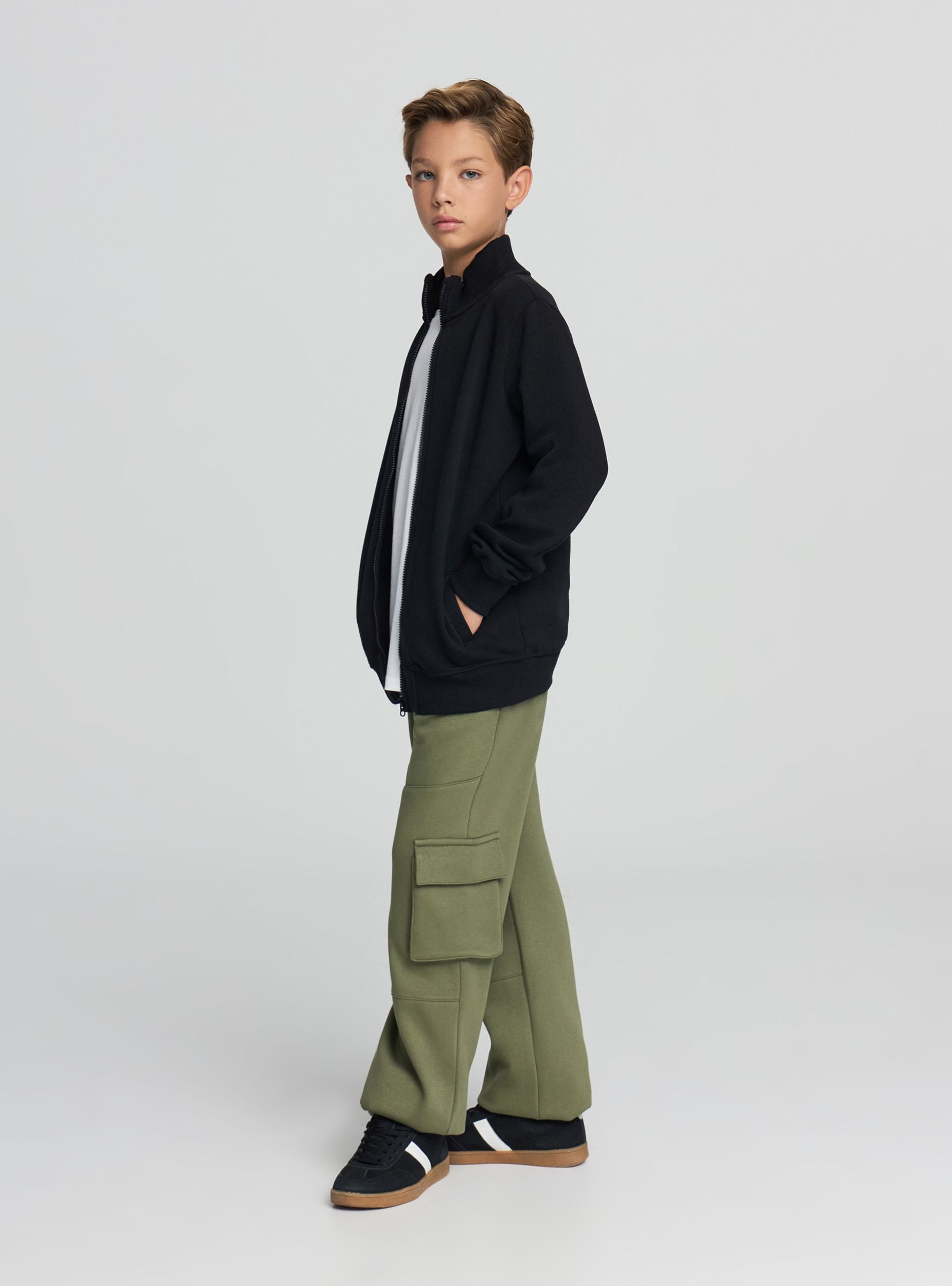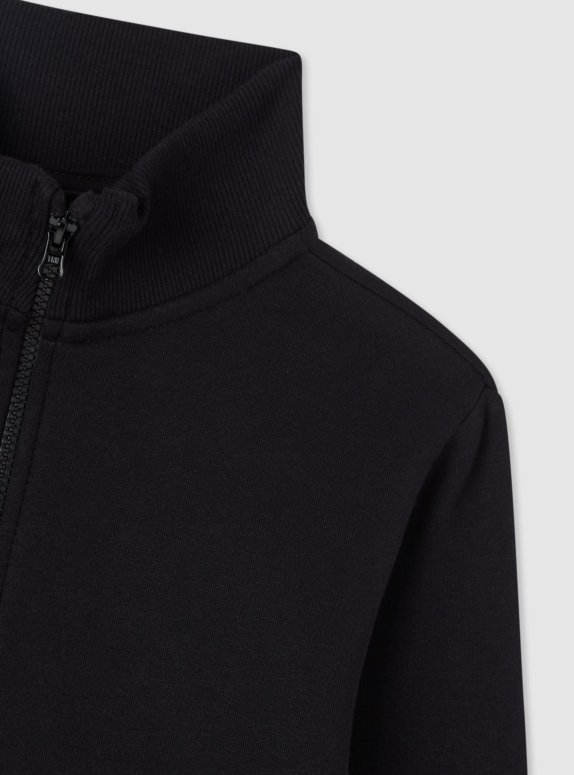 Teža dečija dukserica sa rajsferšlusom, idealna za ležeran i udoban izgled. Ima regularan kroj sa dugim rukavima i visokim kragnom za dodatnu zaštitu. Opremljena je praktičnim bočnim džepovima i jednobojnim dizajnom, ova dukserica je savršena za hladnije dane. Lako se kombinuje sa farmerkama ili sportskim pantalonama za svestran i funkcionalan outfit.Detalji