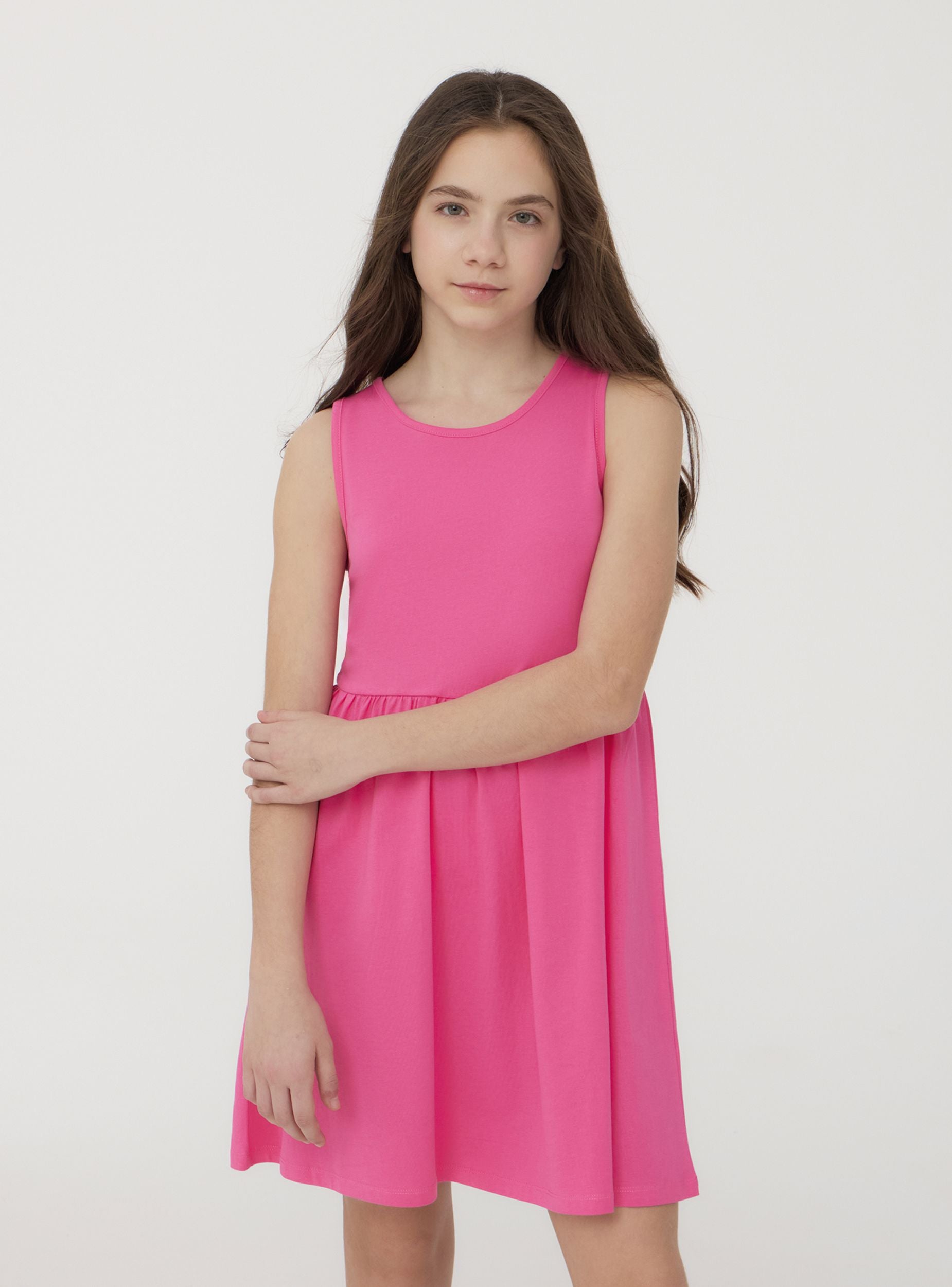 Abito da bambina dal design semplice e delicato, caratterizzato da una tinta unita che ne esalta l'eleganza. Smanicato per garantire freschezza e libertà di movimento, è realizzato in morbido jersey, ideale per le giornate estive. La linea fluida della gonna dona leggerezza e comfort, perfetta per accompagnare le bambine nelle loro avventure quotidiane.Detalji