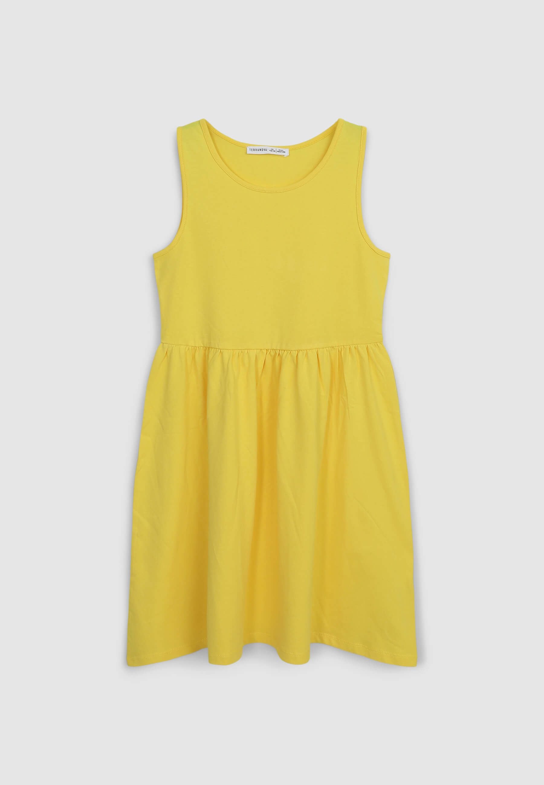 Abito da bambina dal design semplice e delicato, caratterizzato da una tinta unita che ne esalta l'eleganza. Smanicato per garantire freschezza e libertà di movimento, è realizzato in morbido jersey, ideale per le giornate estive. La linea fluida della gonna dona leggerezza e comfort, perfetta per accompagnare le bambine nelle loro avventure quotidiane.Detalji