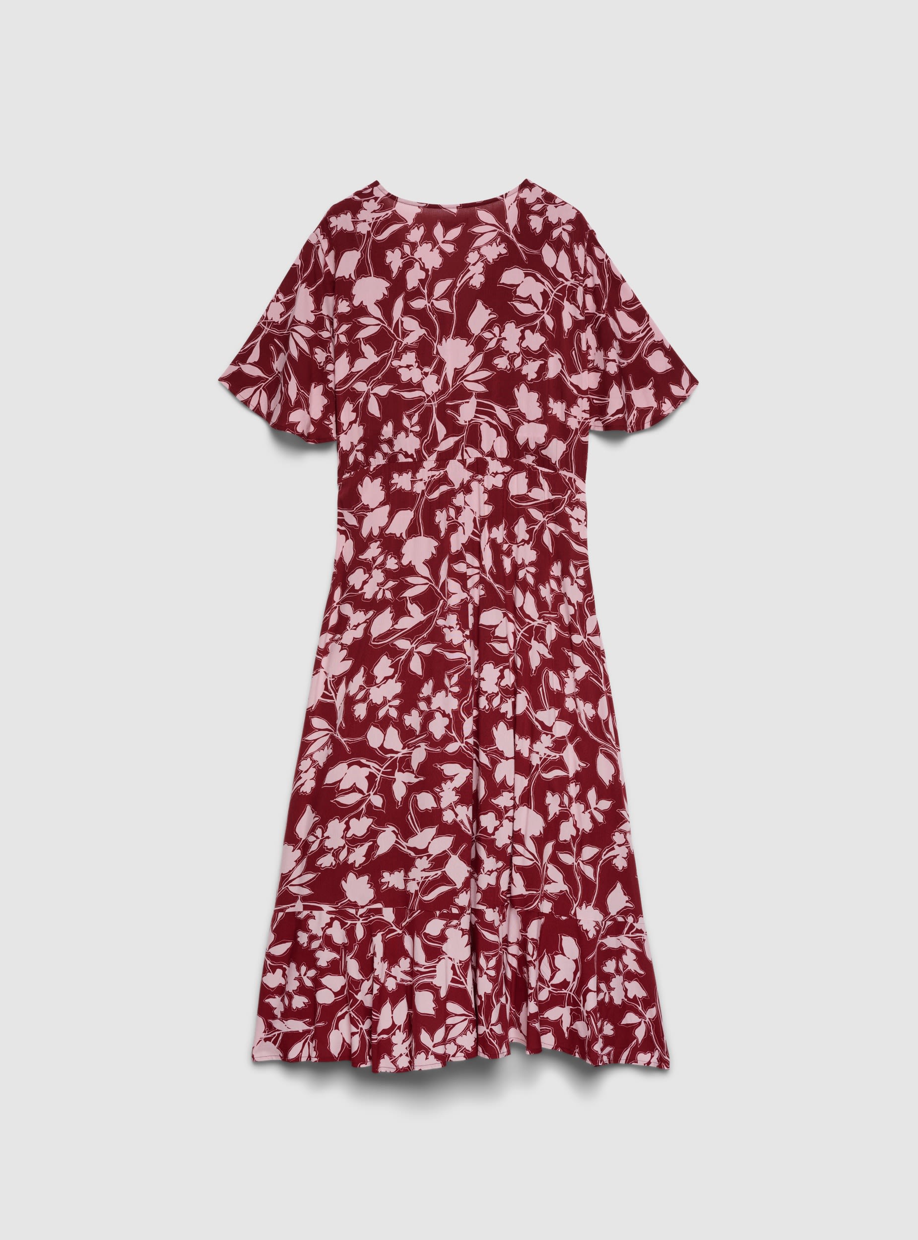 Ženska haljina sa cvetnim printom i krojem na preklop, dizajnirana da istakne siluetu zahvaljujući vezivanju u struku. V-izrez i kratki rukavi daju laganost, dok široka i razigrana suknja prati pokrete. Idealna je uz sandale ili patike za dnevne prilike, a može se nositi i u elegantnijim kombinacijama sa salonkama i aksesoarima.Detalji