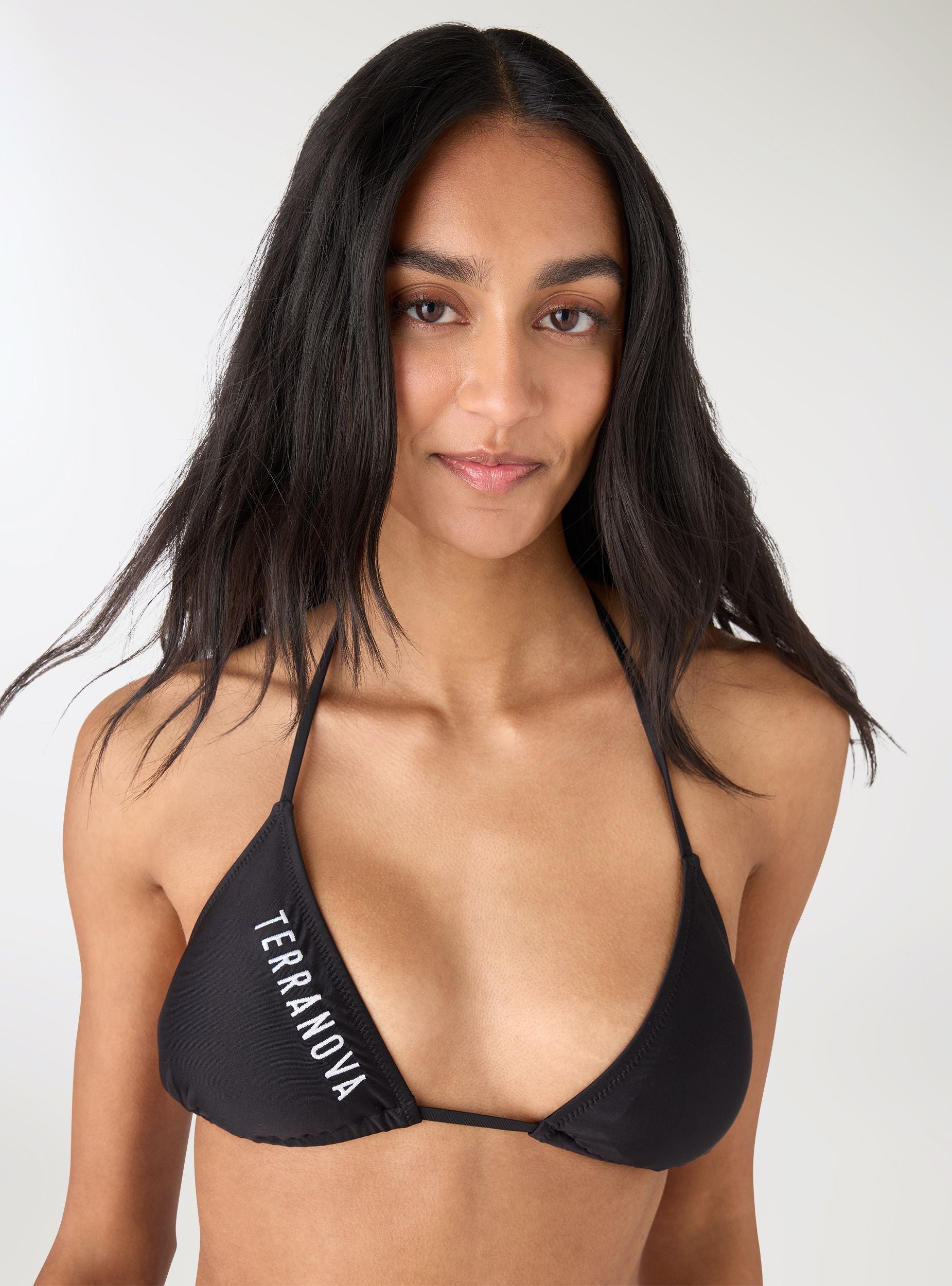 Ženski bikini grudnjak u obliku trougla, idealan za more i bazen. Model sa laganim punjenjem i kliznim korpicama, koje se mogu podešavati vezivanjem traka oko vrata i na leđima za personalizovano pristajanje. Tkanina u jednobojnoj varijanti sa logoom, lako se kombinuje sa usklađenim gaćicama i plažnim pokrivačima za svestran letnji izgled.Detalji