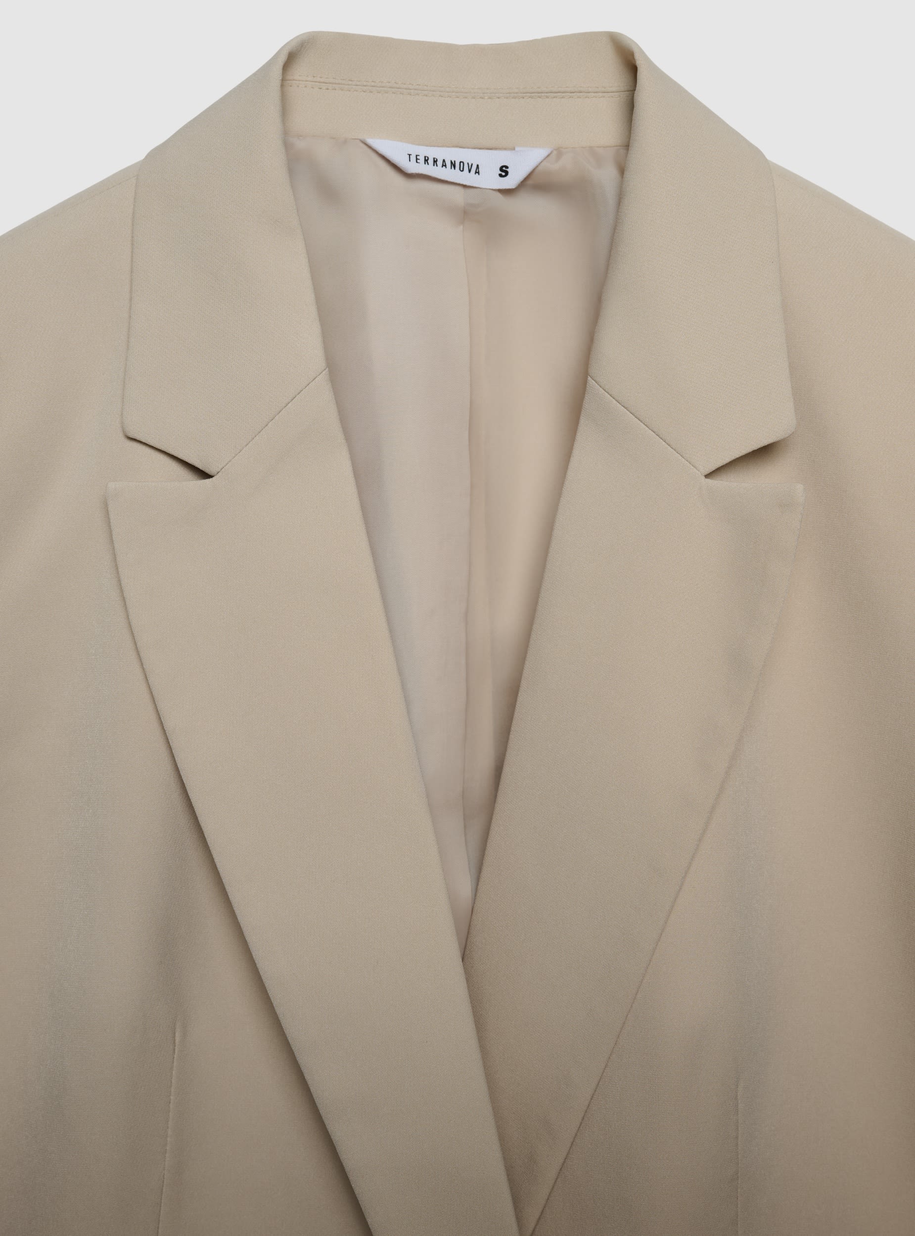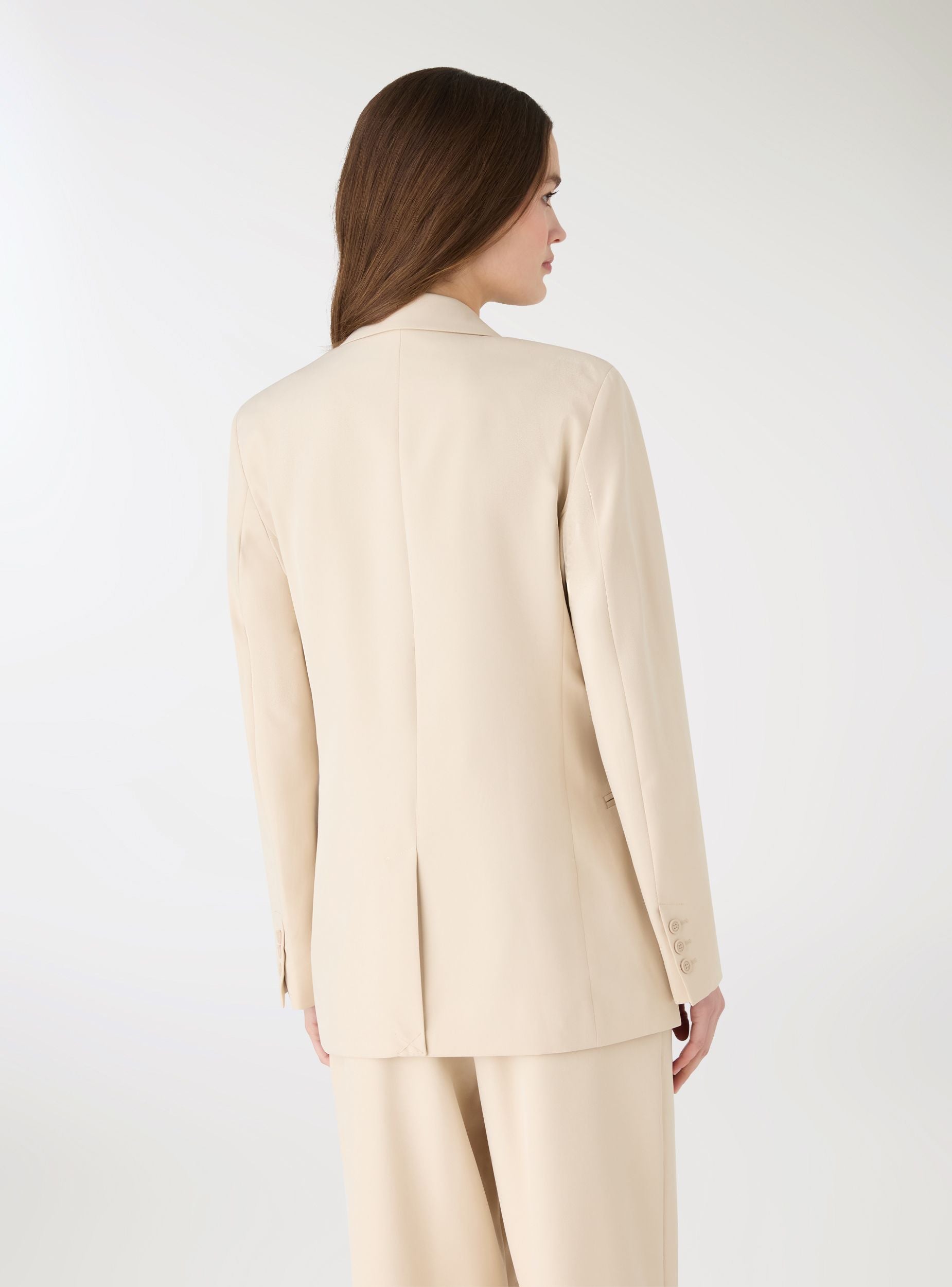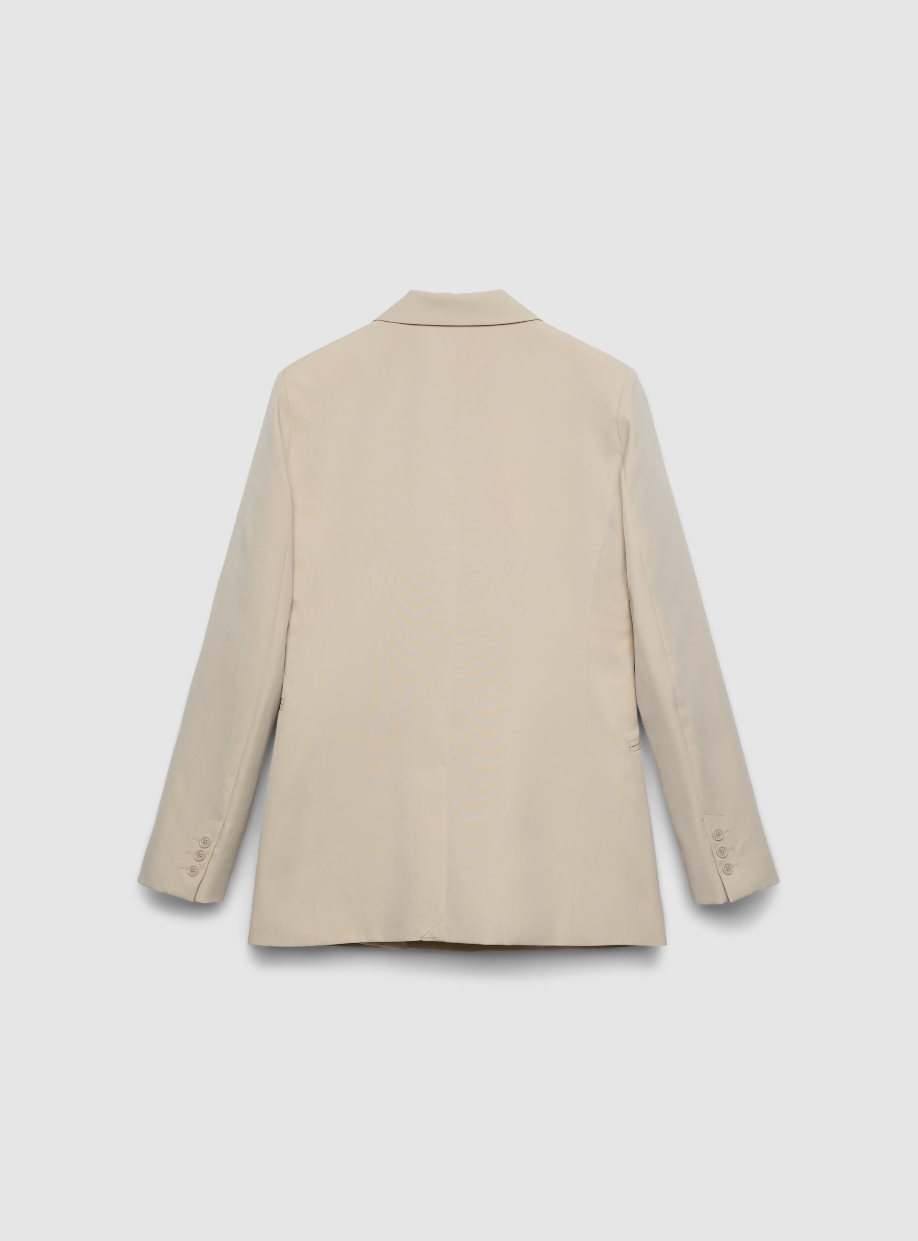 Ženski dvoredni sako u jednobojnoj varijanti, dizajniran za upečatljive kombinacije od kancelarije do koktela. Rever u obliku koplja, dugi rukavi i dvostruko kopčanje koje ističe siluetu. Prednji džepovi sa ušivenim ivicama i dužina ispod bokova za elegantan regular kroj. Postavljen, prati košulje, majice i krojene pantalone ili džins, podižući dnevne i večernje autfite sofisticiranim detaljem.Detalji